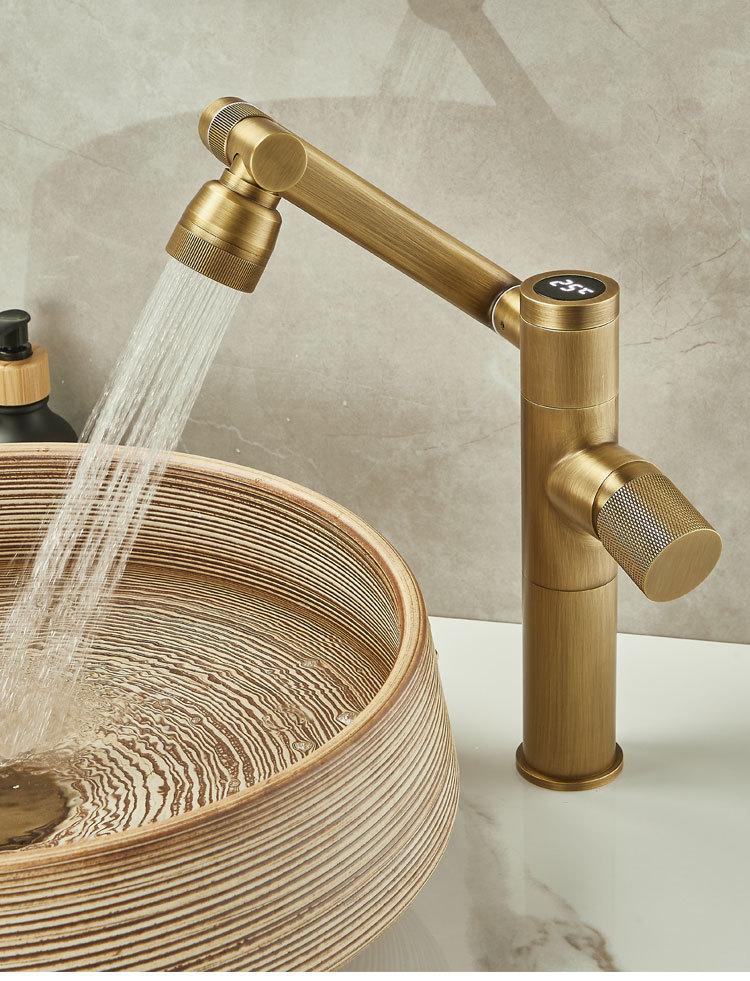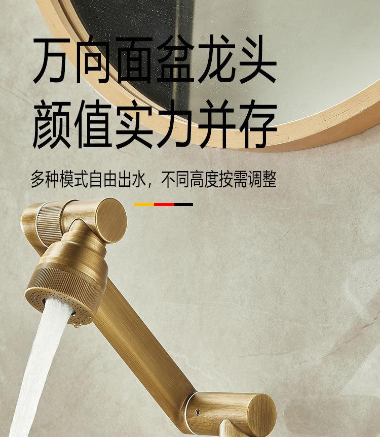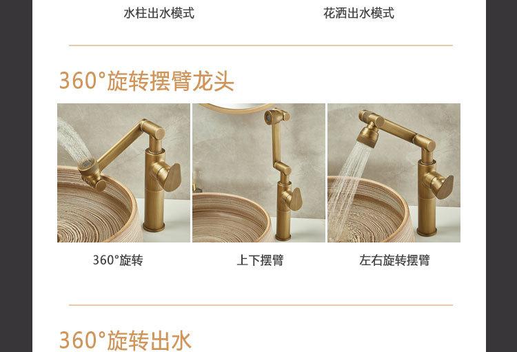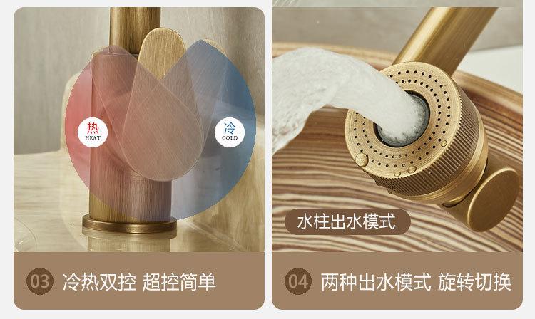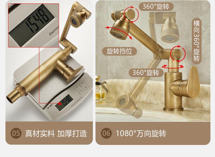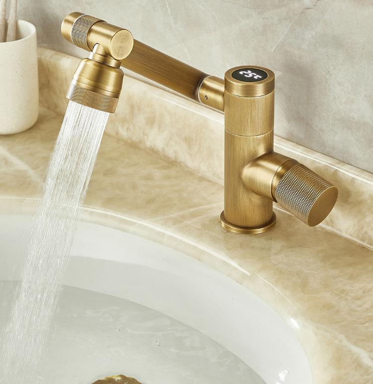 Grifo de Lavabo de Cobre Completo Antiguo Giratorio Frío y Caliente Baño Lavabo Lavabo Hogar Lavabos