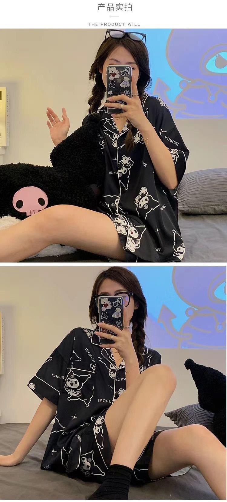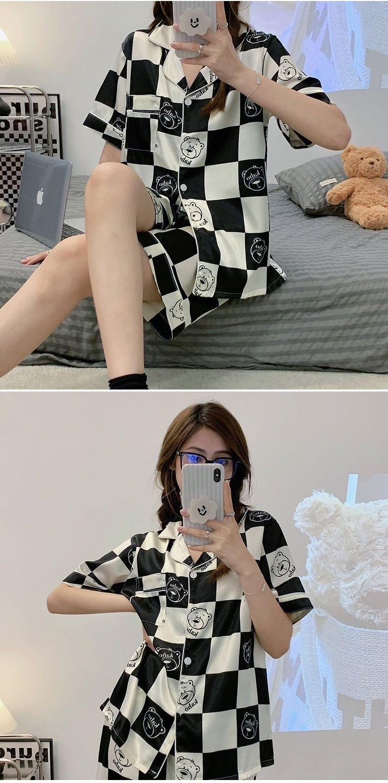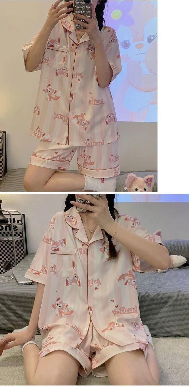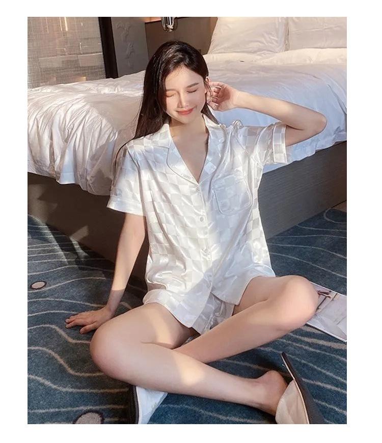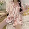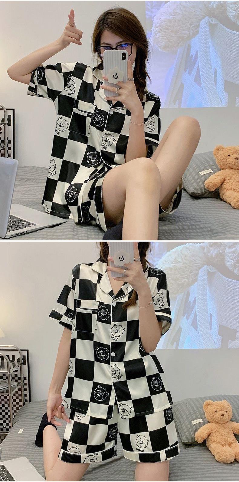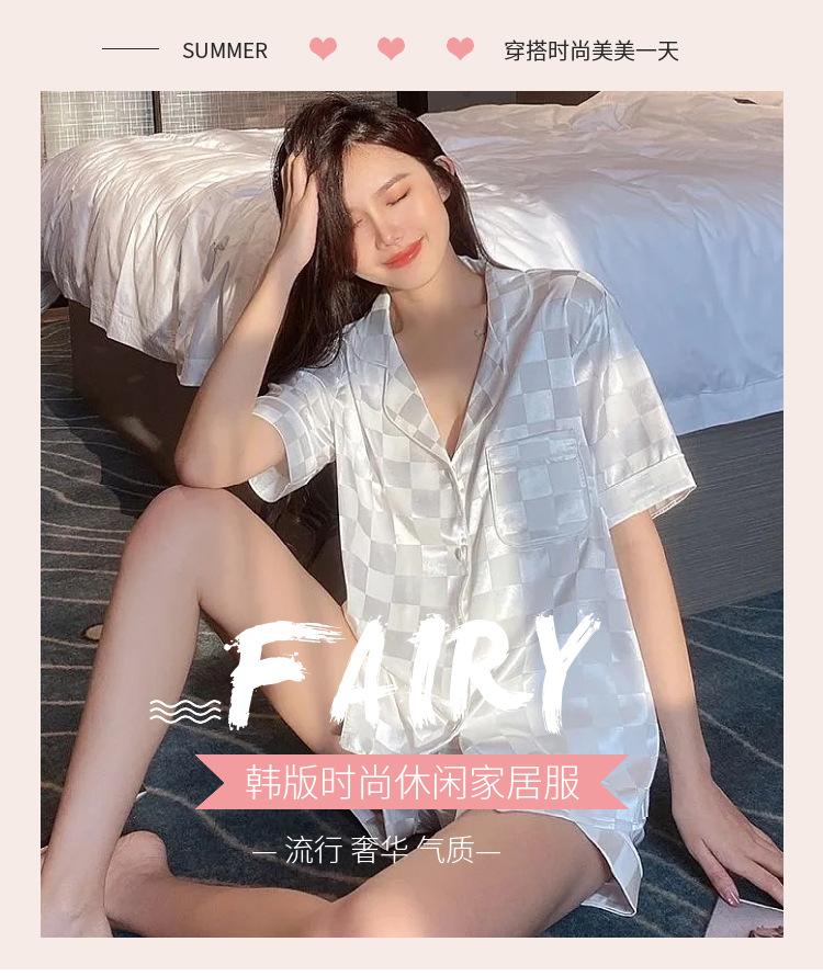 Pijamas de seda de hielo de comercio exterior para mujer, novedad de verano 2024, estilo coreano, pantalones cortos de manga corta, traje fino para el hogar