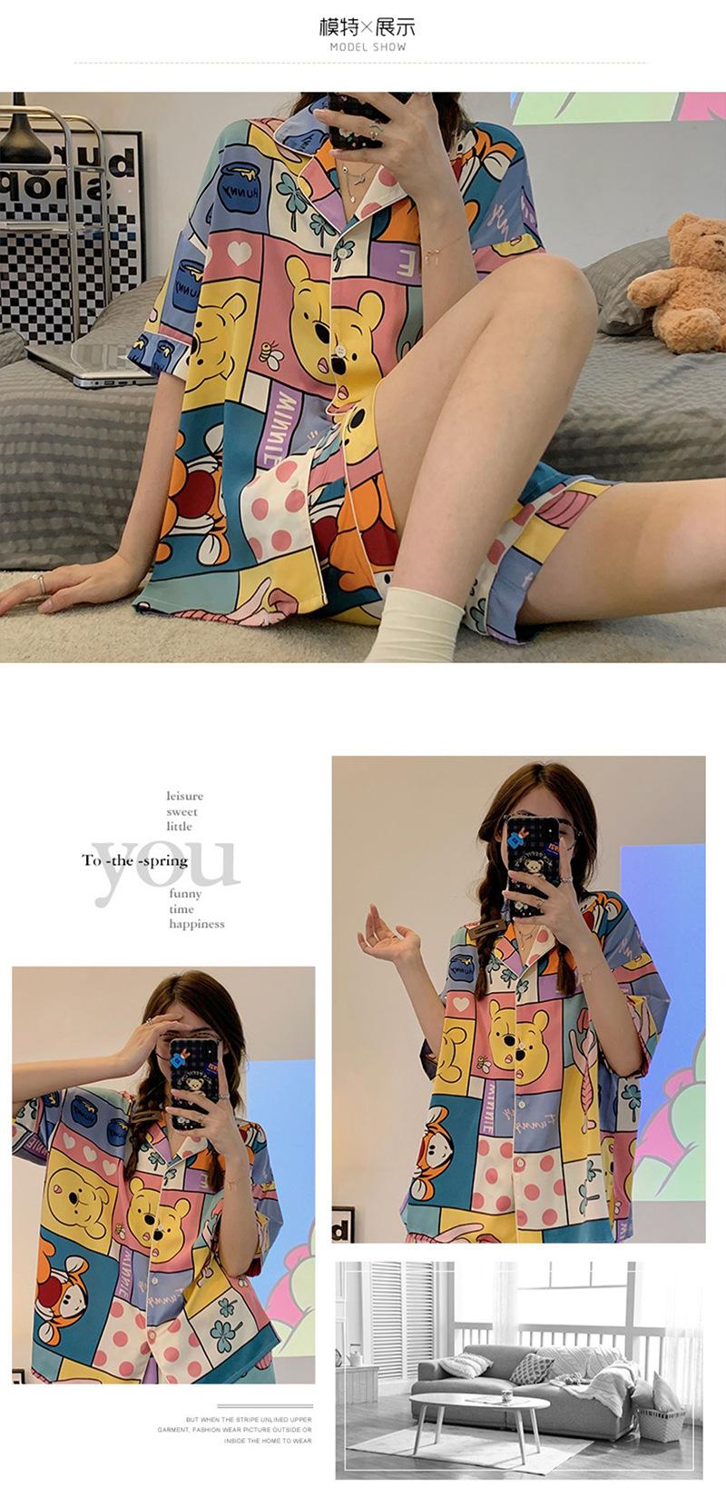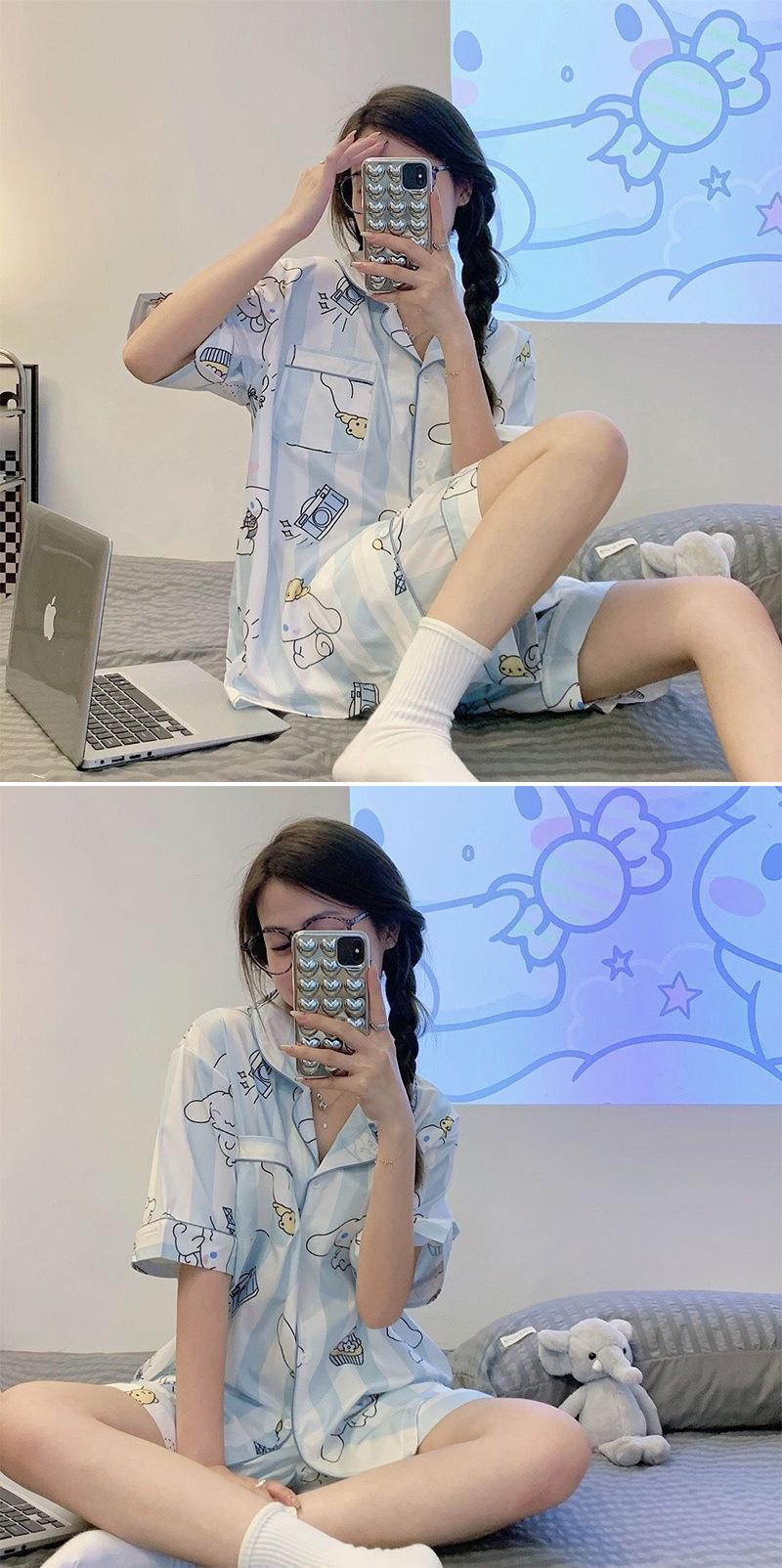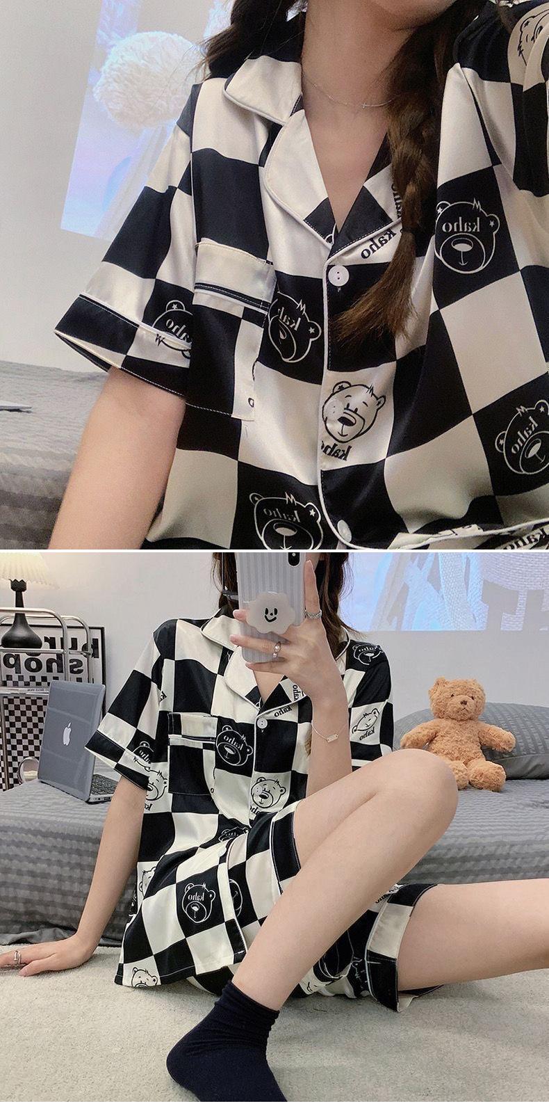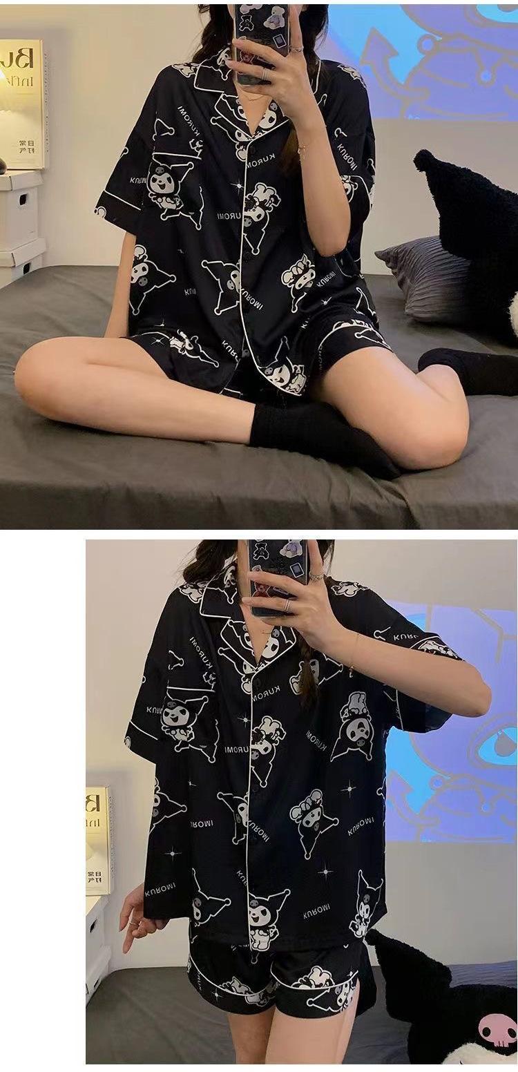 Pijamas de seda de hielo de comercio exterior para mujer, novedad de verano 2024, estilo coreano, pantalones cortos de manga corta, traje fino para el hogar
