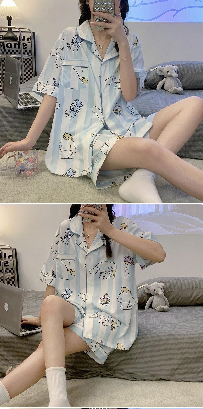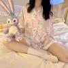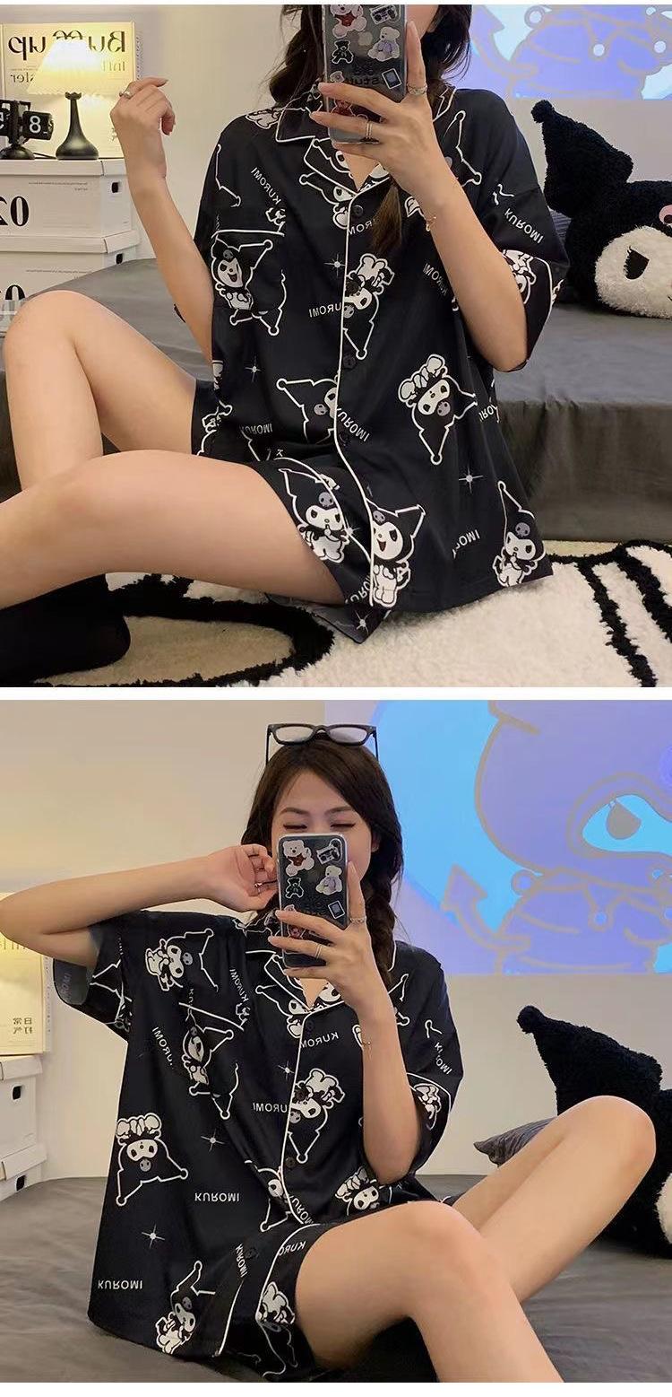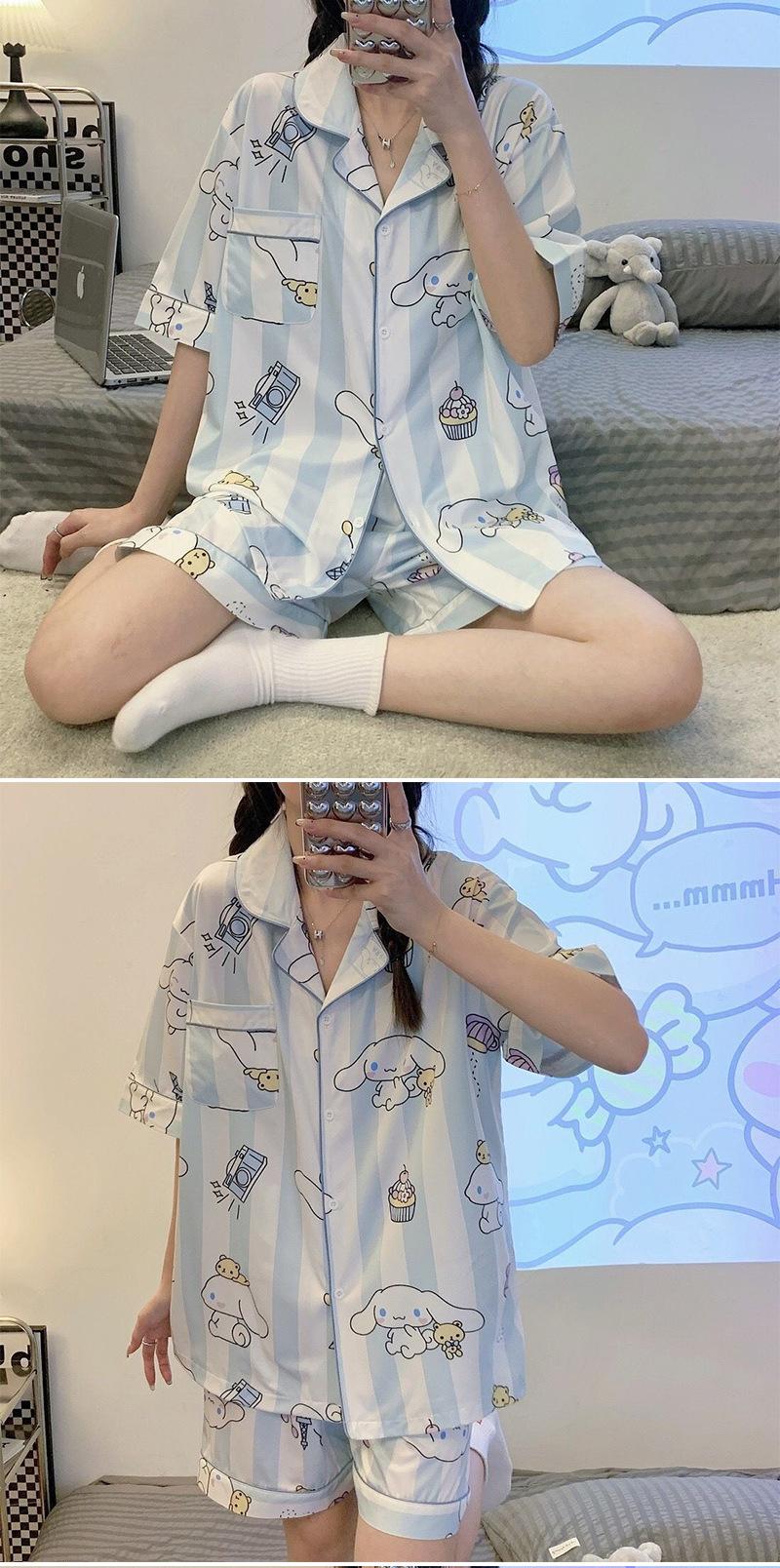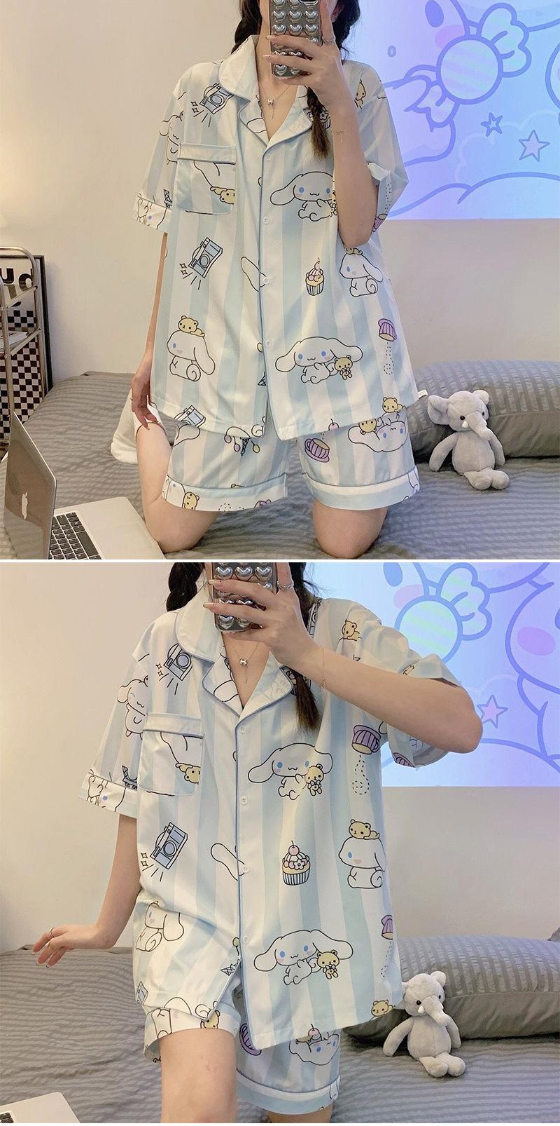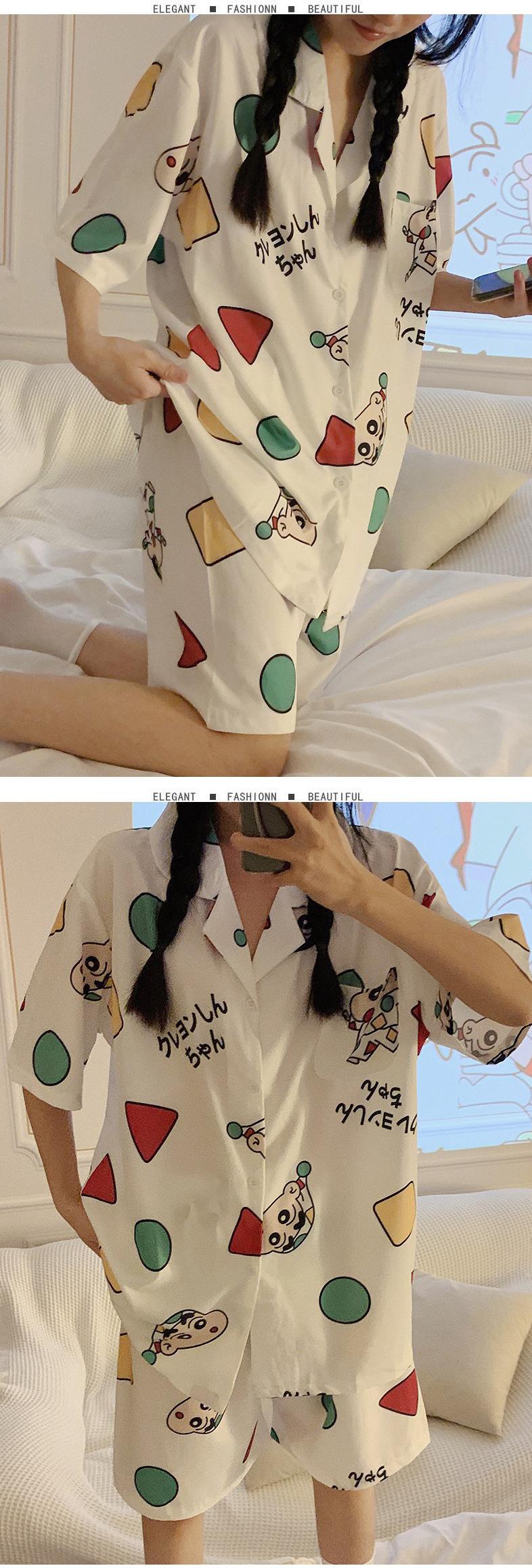 Pijamas de seda de hielo de comercio exterior para mujer, novedad de verano 2024, estilo coreano, pantalones cortos de manga corta, traje fino para el hogar
