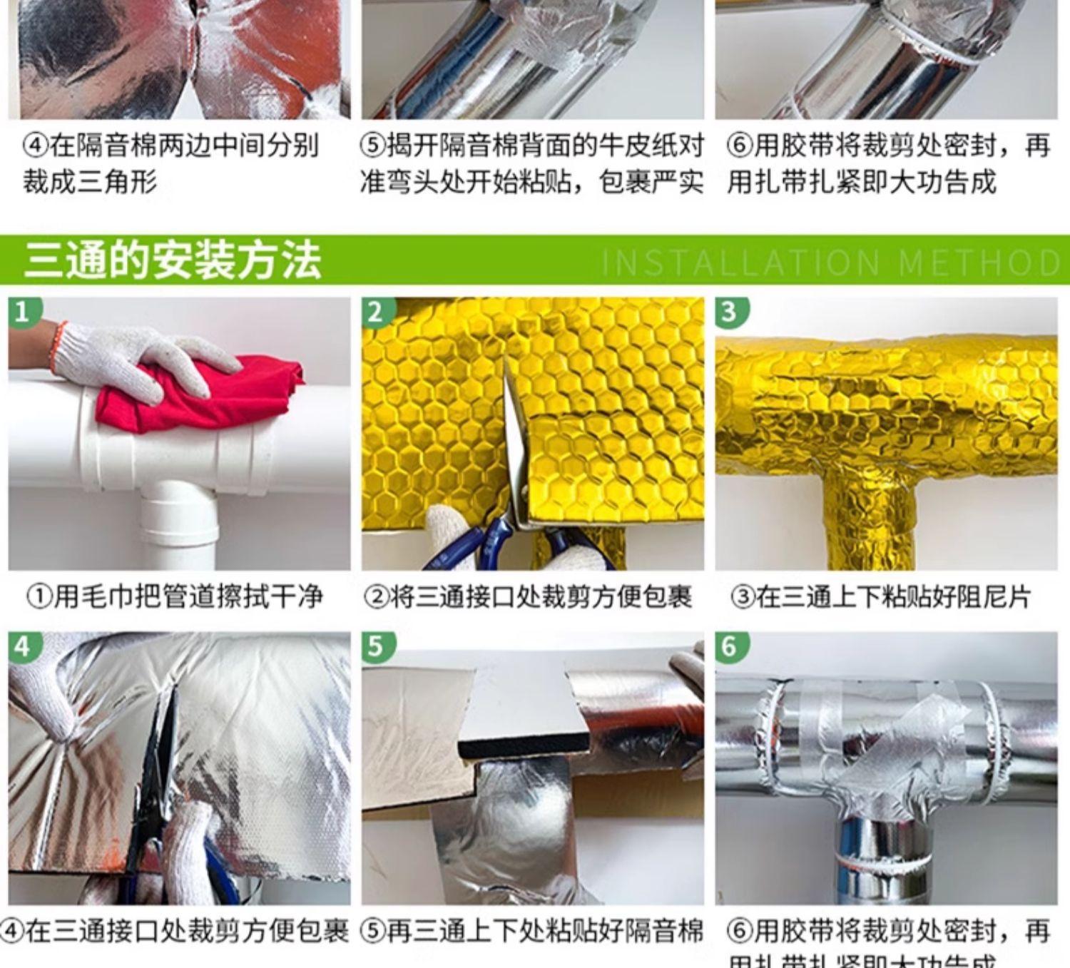 Aislamiento acústico de tuberías de alcantarillado, bolsa de inodoro de algodón, absorción de sonido de tuberías, pegatinas de pared autoadhesivas de reducción de ruido para el hogar, rey silencioso