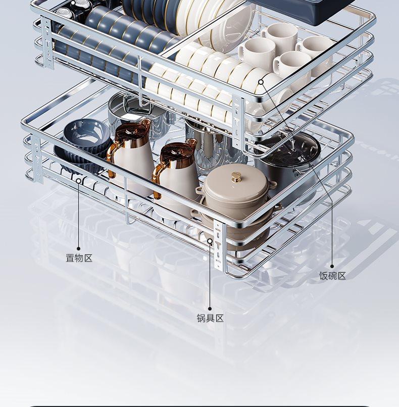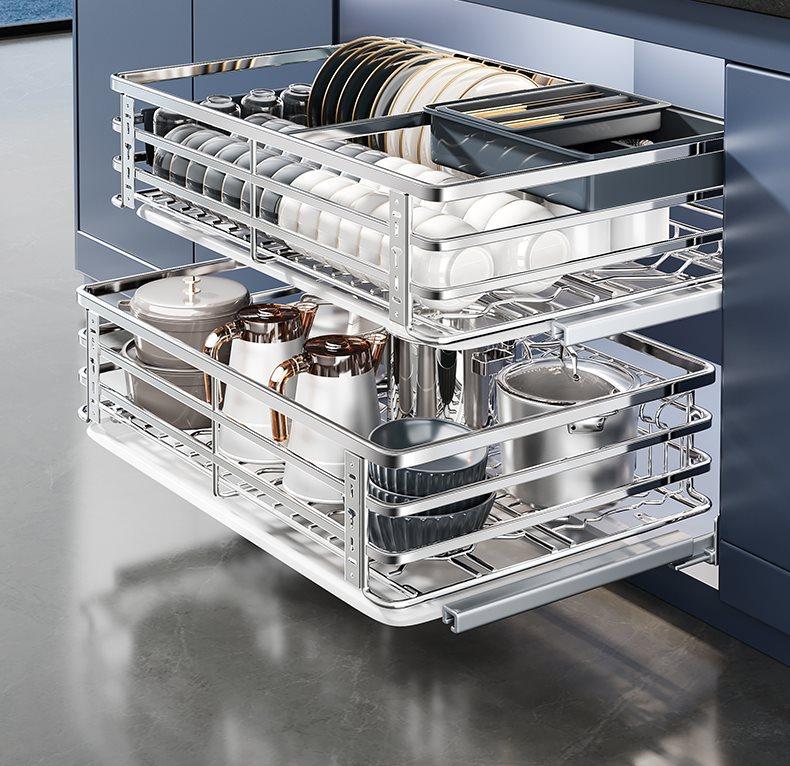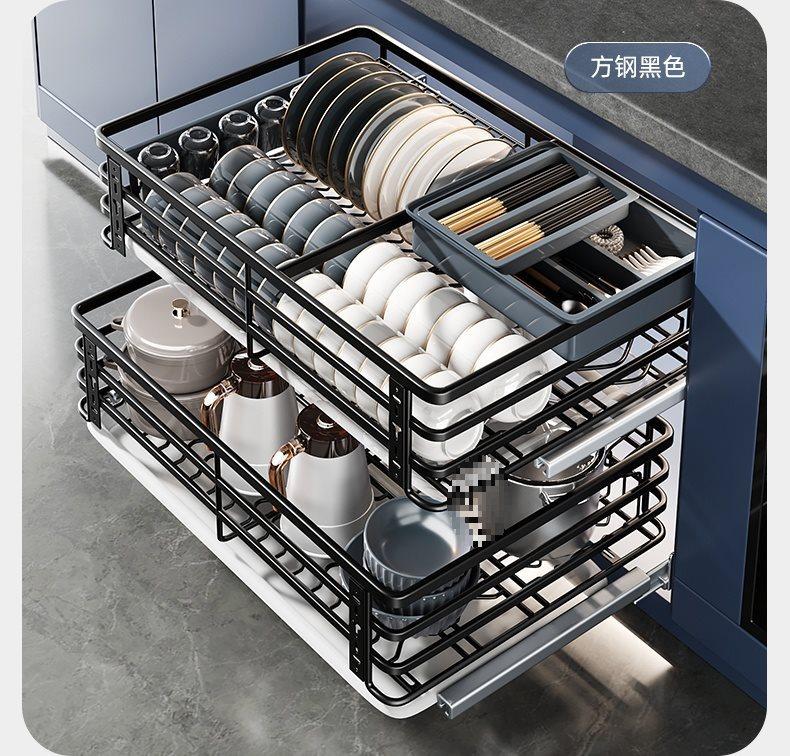 Cesta Ermo para gabinete de cocina, escurreplatos de acero inoxidable 304 con doble cajón, riel deslizante, cesta para cuencos