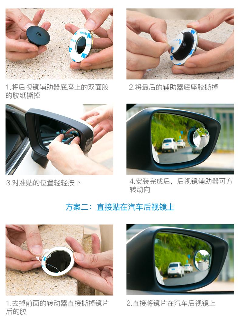 1. Péguelo en el espejo retrovisor de su automóvil original para ampliar su campo de visión y permitirle conducir con seguridad durante todo el camino.