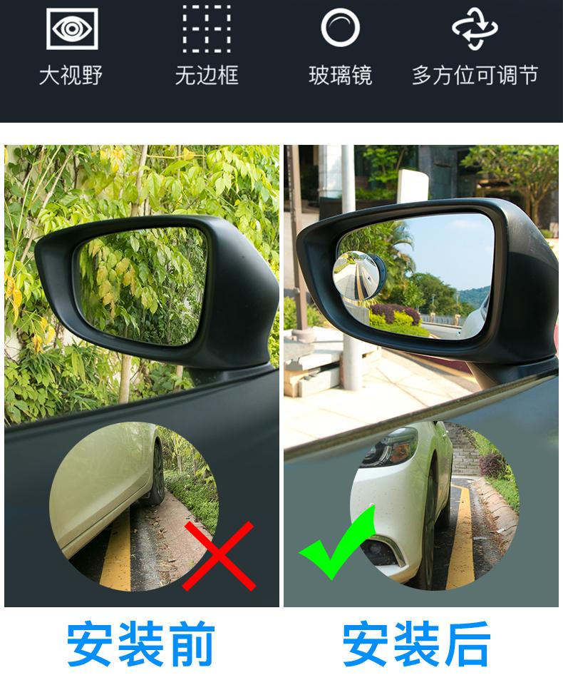 [Descripción del producto] Único, destacando la sensación tridimensional, el ángulo se puede ajustar 360 grados y se puede pegar en el espejo retrovisor de su automóvil original para ampliar su campo de visión y permitirle conducir con seguridad en todo el camino. Universal