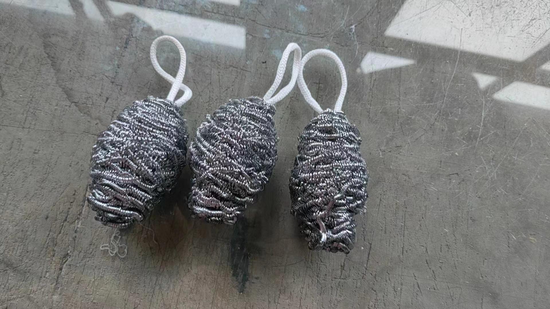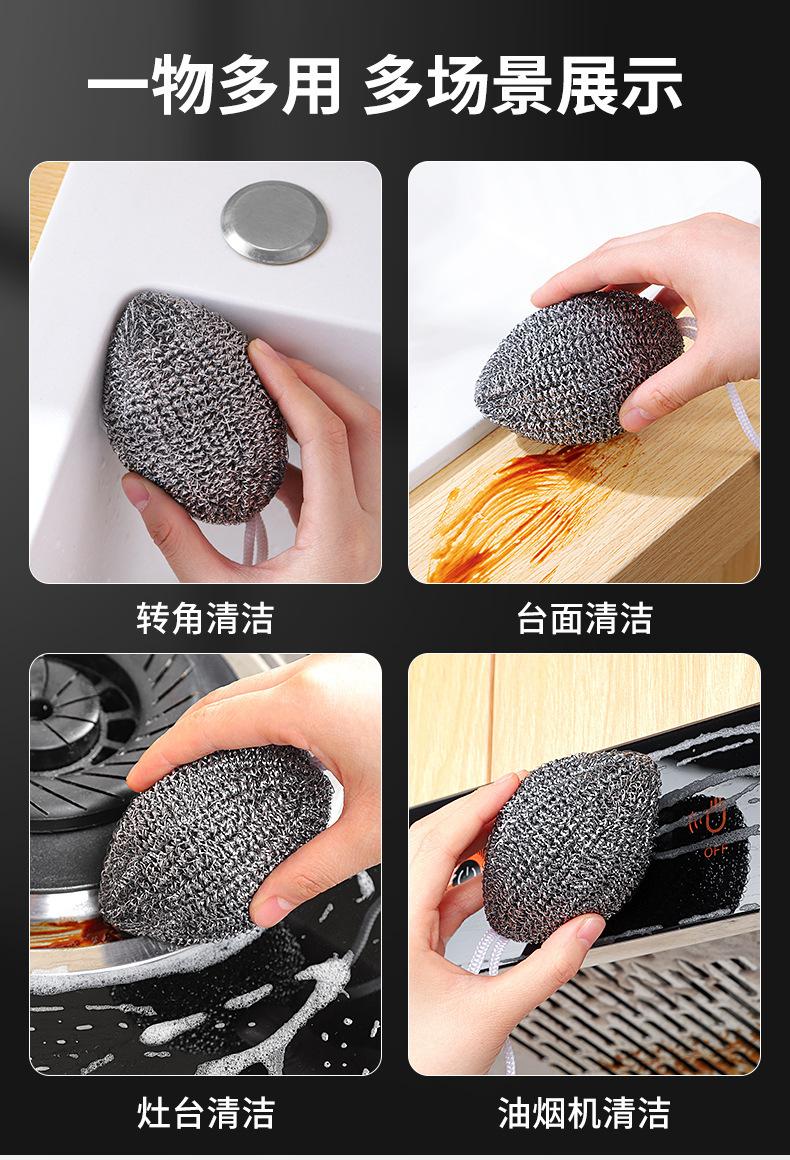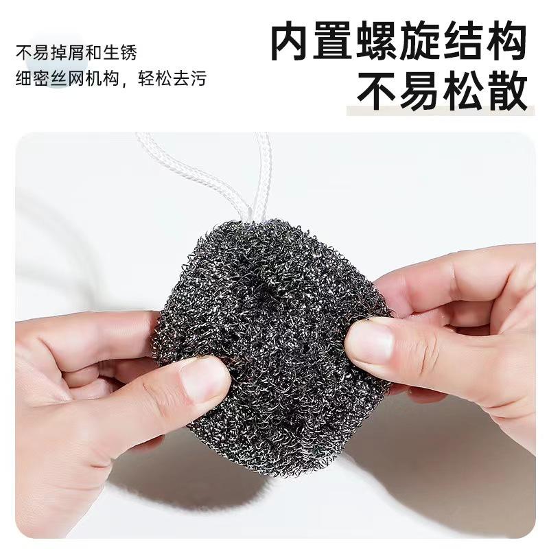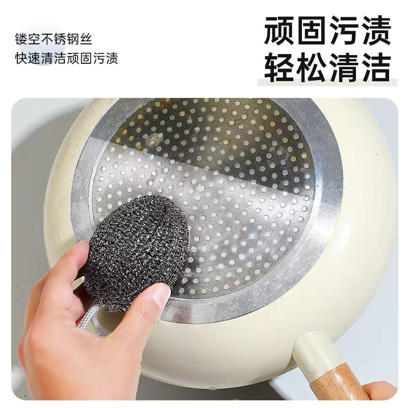 El nuevo producto viene con un cordón de alambre de acero, una bola de acero inoxidable para lavar platos, una bola de limpieza, un cepillo, una olla de cocina, un artefacto grande que no se oxida.