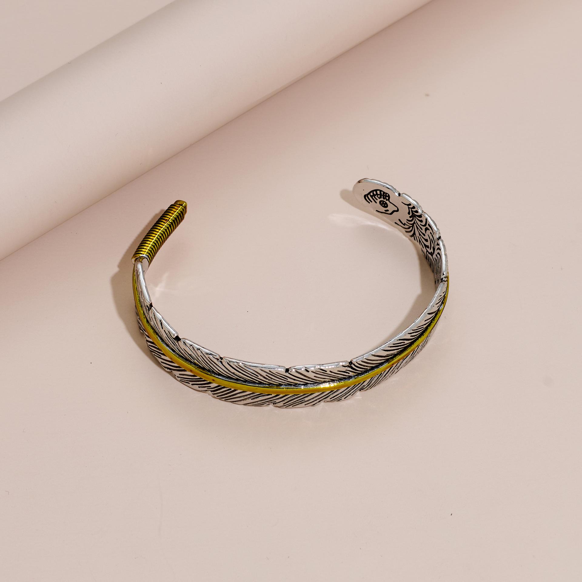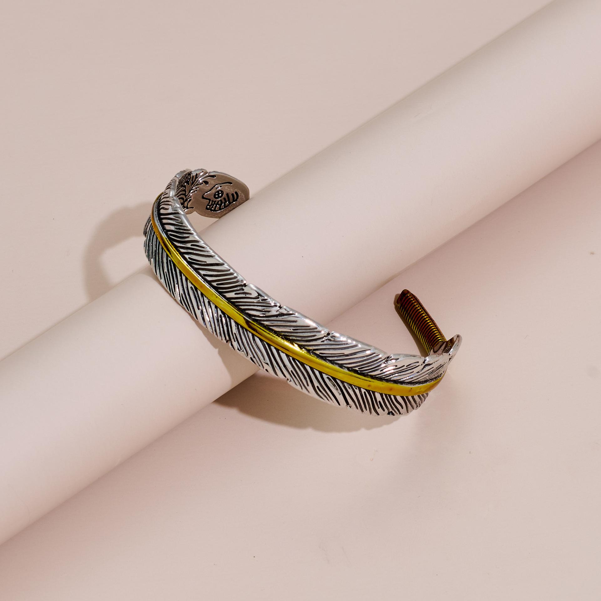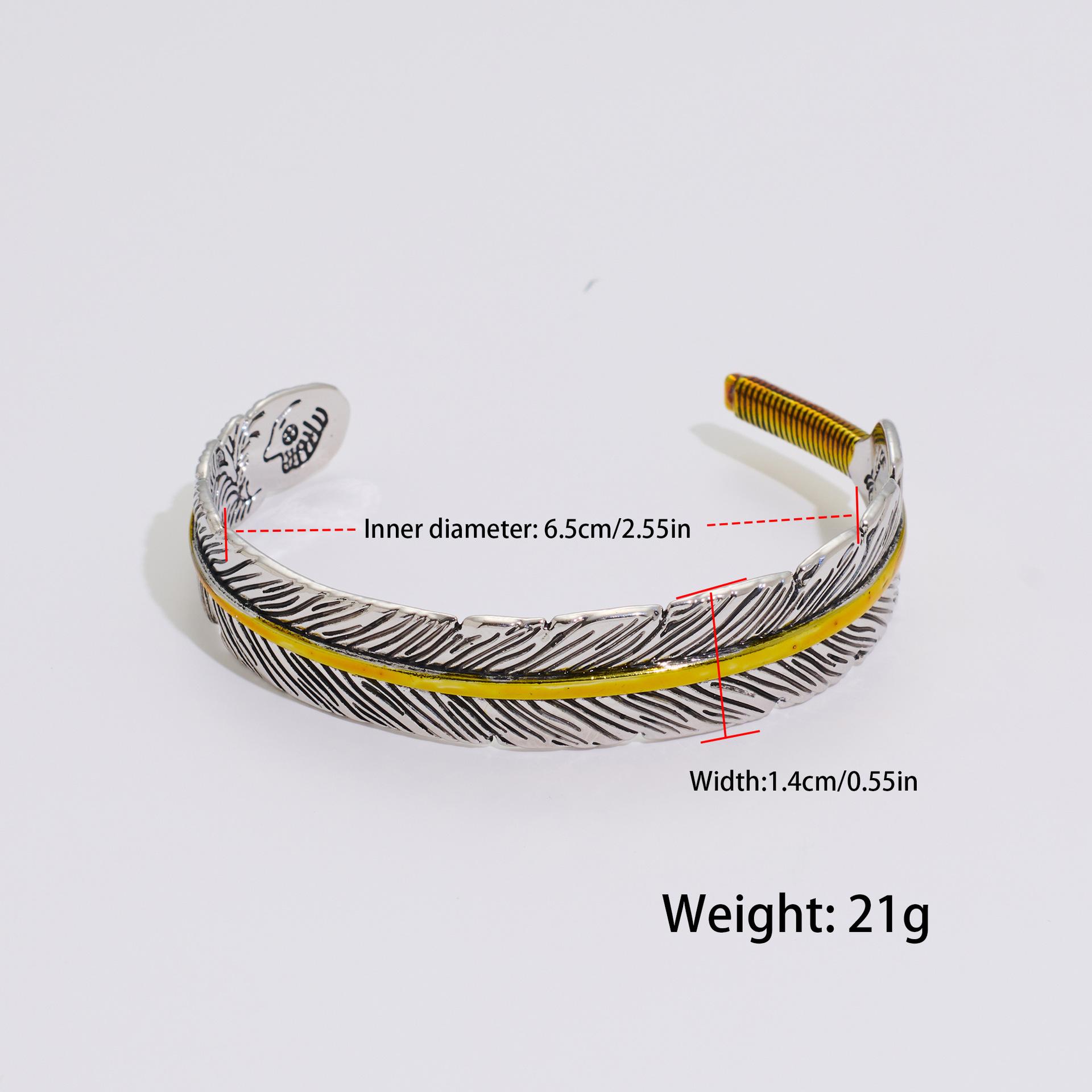 Temu venta caliente transfronteriza pulsera vintage abierta hacer viejo hierba tang pluma pulsera hombres y mujeres pulsera abierta