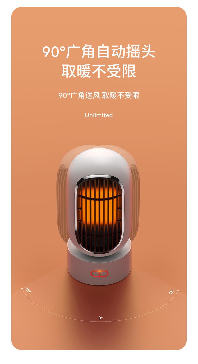 3. Haga clic en el botón de cabeza giratoria una vez para iniciar un ciclo de giro de 90 grados. Haga clic en el botón de cabeza giratoria una segunda vez para apagar la función de giro, y el ángulo del calentador se restablecerá automáticamente al punto central.