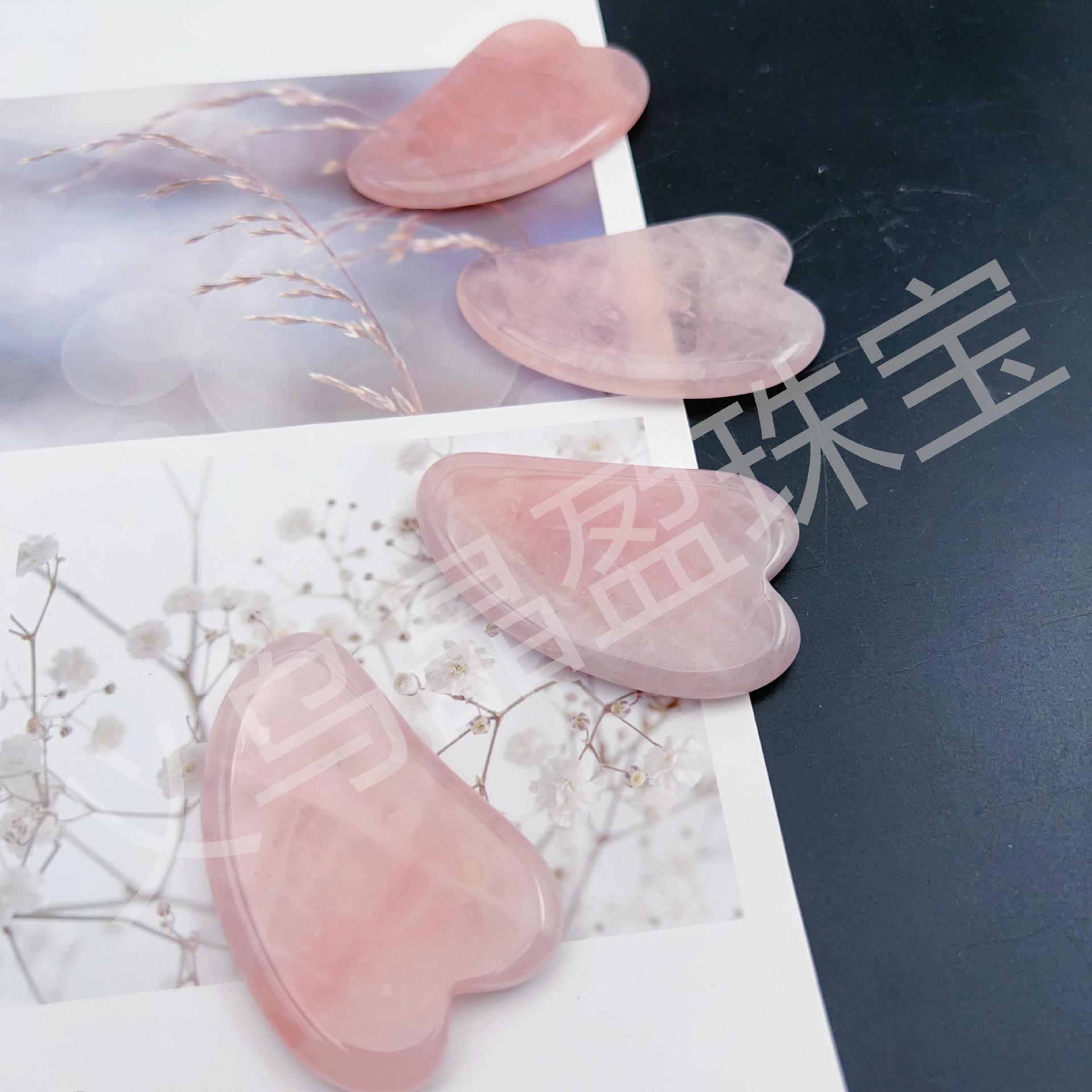 Rodillo Gua Sha Facial de Cuarzo Rosa Natural con Forma de Corazón Masajeador Facial y para Ojos de Jade Cuidado de la Belleza y la Salud Ventas Calientes Transfronterizas al por Mayor