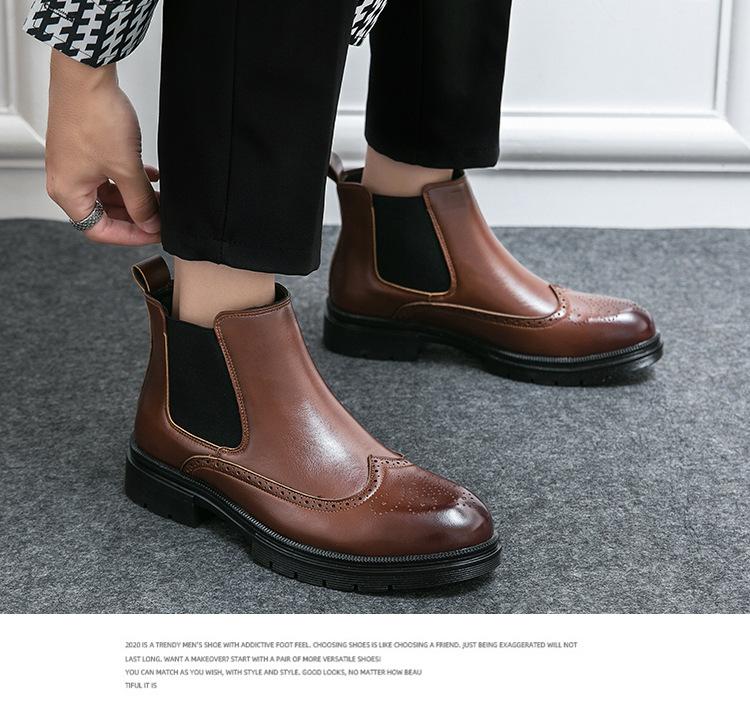 Botas Chelsea retro para hombre, nuevas botas altas de cuero de moda para otoño e invierno, botas Martin, zapatos de cuero Broo