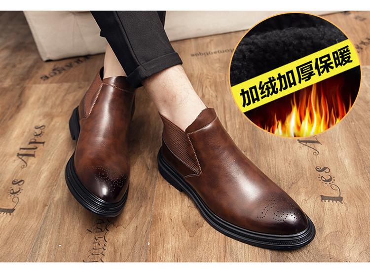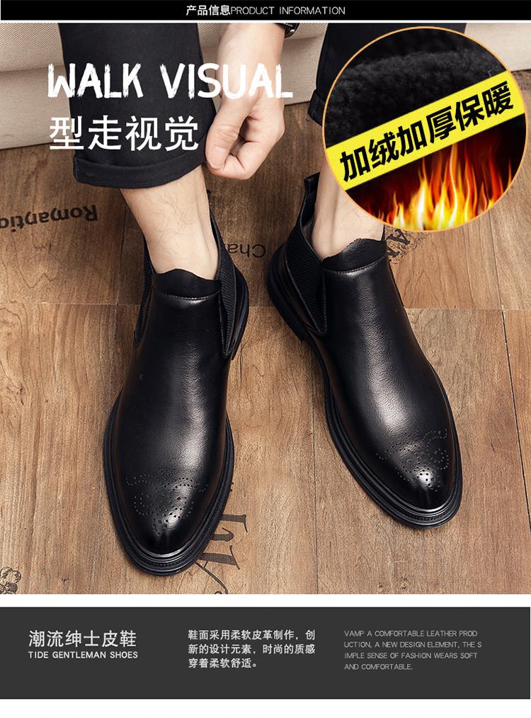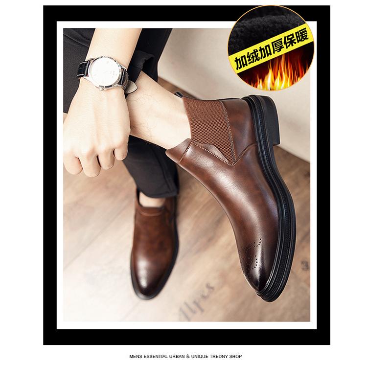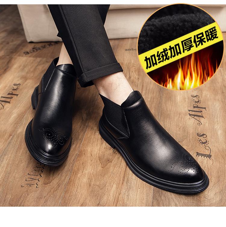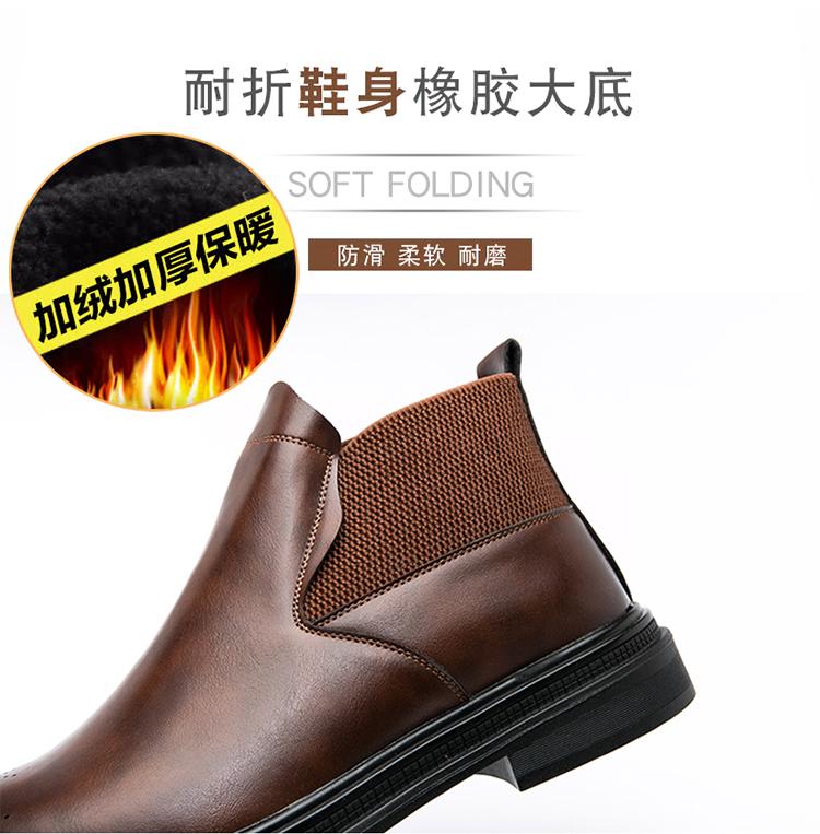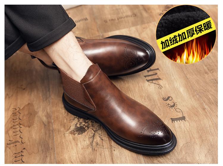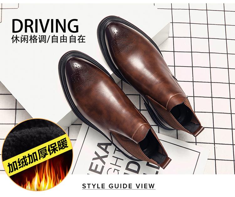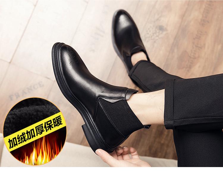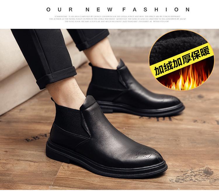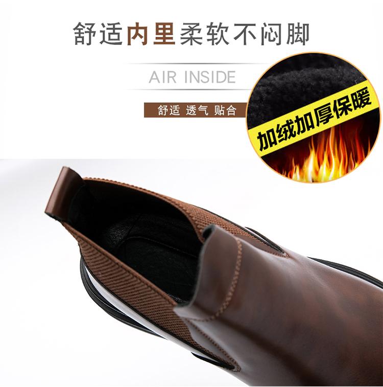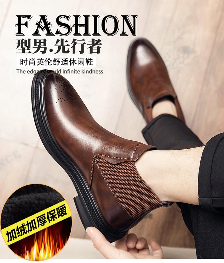 Botas Martin para hombre, de caña alta, estilo británico, con aumento de altura, estilo coreano, de cuero, de caña media, cálidas, con forro polar, de cuero Fu.