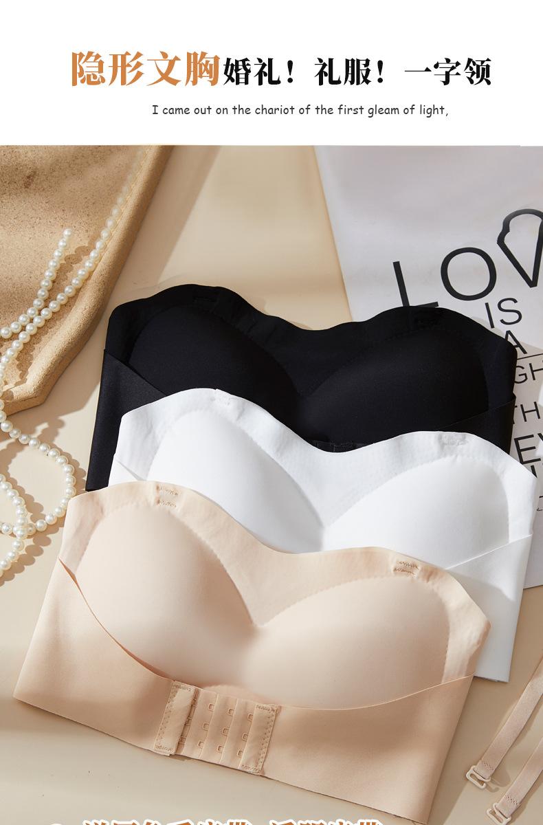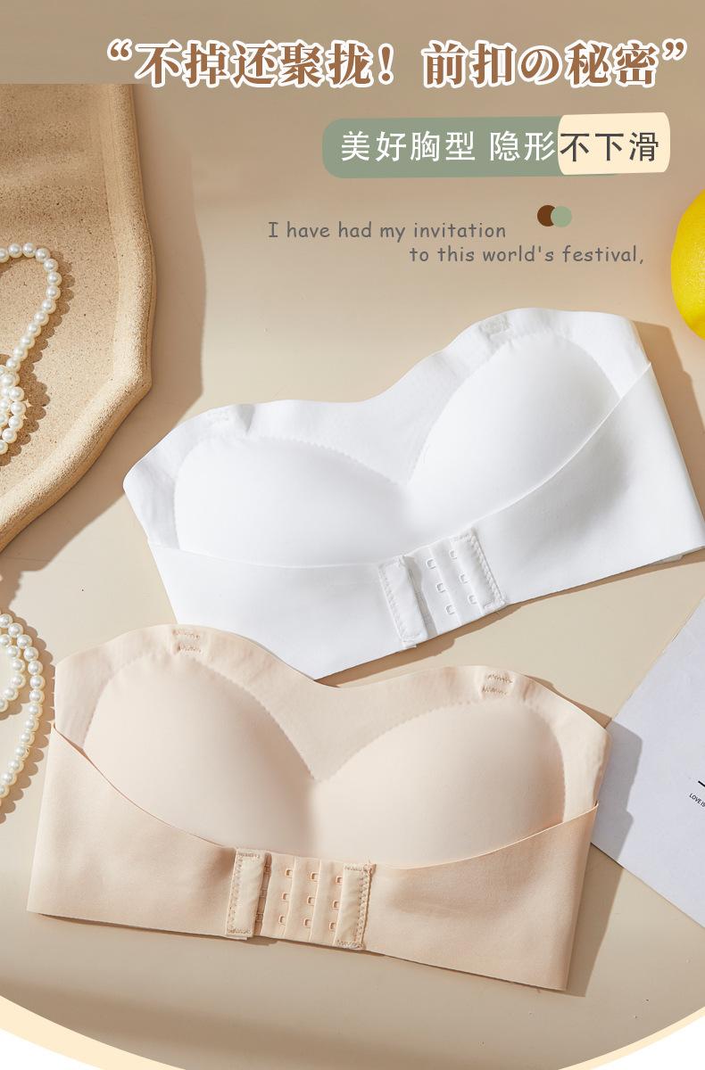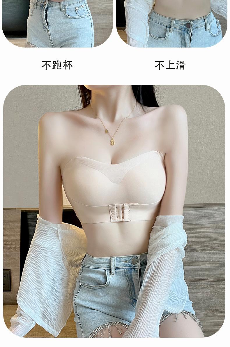 Sujetador sin tirantes para mujer, Push-Up para bustos pequeños, Antideslizante, Bandeau sin costuras, Sujetador delgado con almohadillas en el pecho, Estilo bandeau