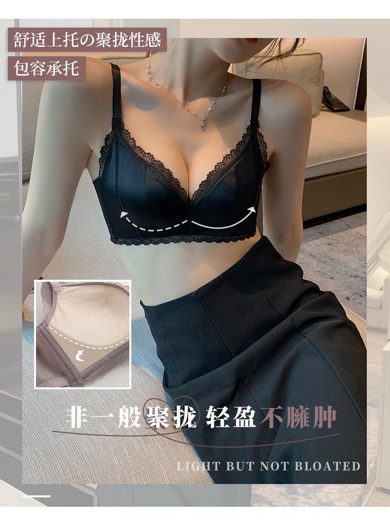 Íntimos sin costuras sexys y cómodos para mujer, Verano delgado, Busto grande, Pequeño push-up, Senos secundarios, Sujetador push-up ajustable