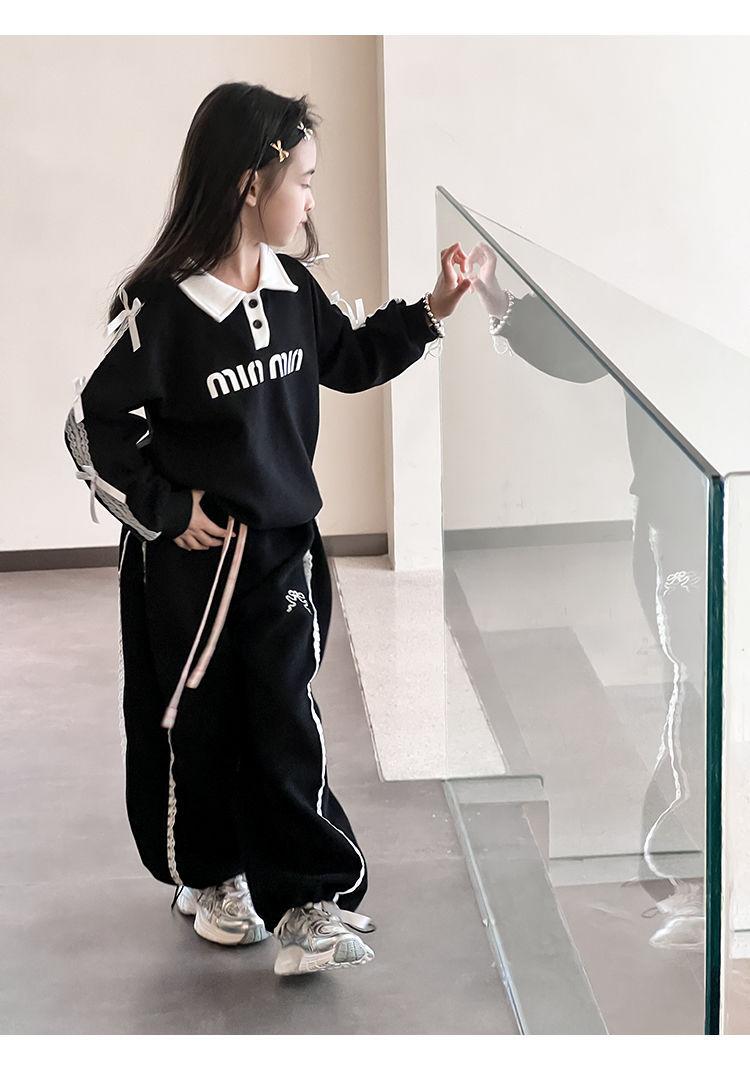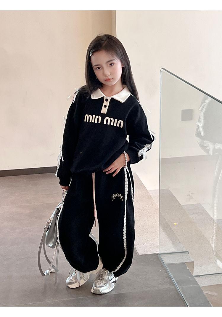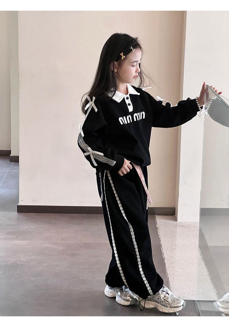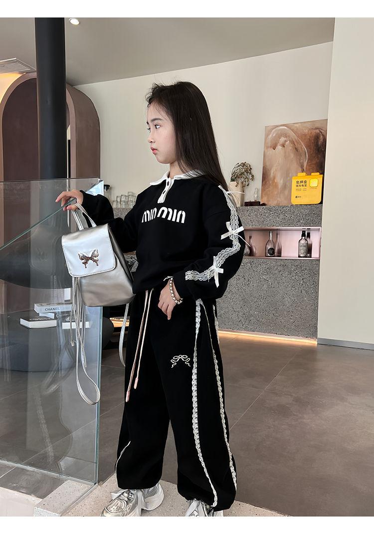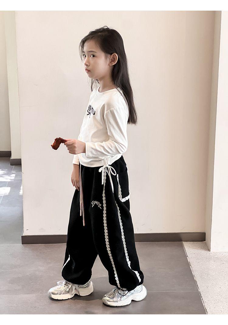 Pantalones casuales coreanos para niñas, versátiles, con lazo al tobillo, para niños, primavera y otoño, nuevos, elegantes, de moda, de encaje, holgados, deportivos, modernos