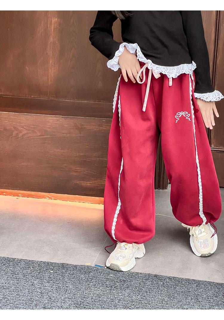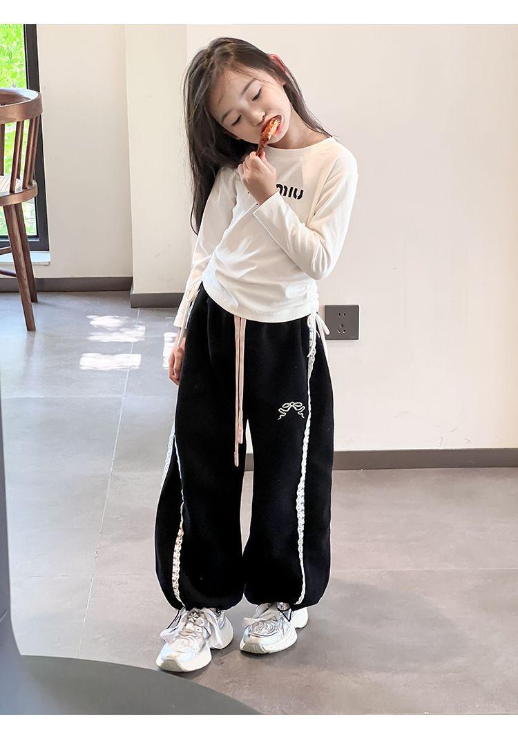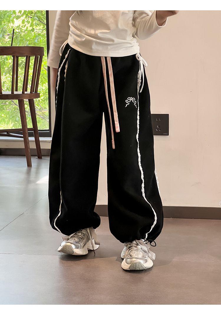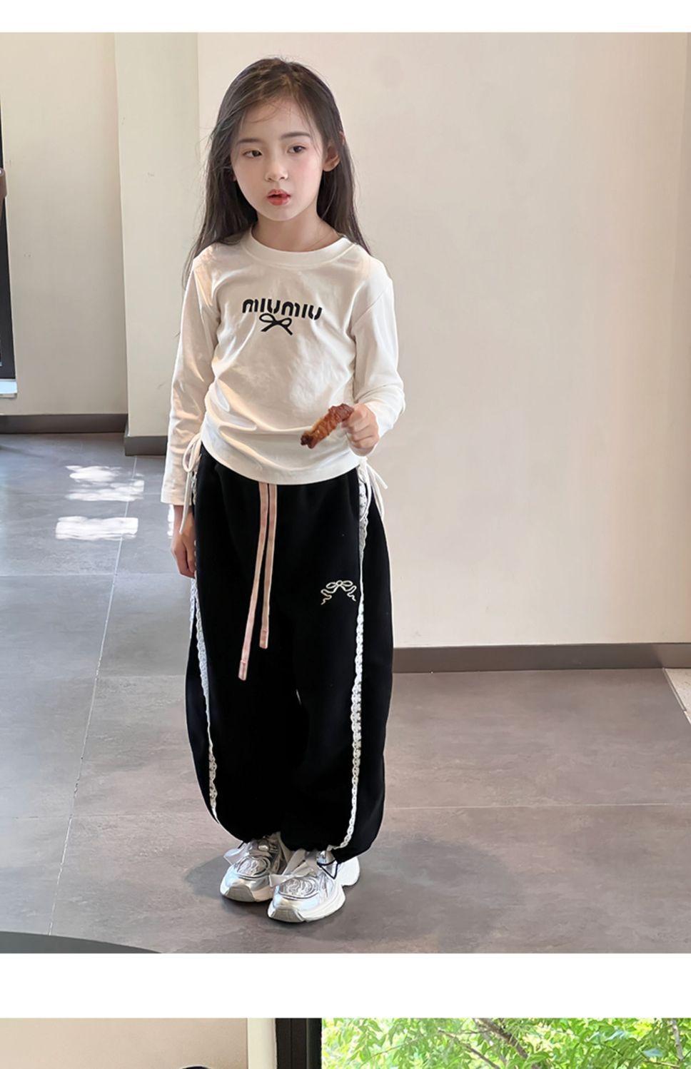 Compra Pantalones casuales coreanos para niñas, versátiles, con lazo al tobillo, para niños, primavera y otoño, nuevos, elegantes, de moda, de encaje, holgados, deportivos, modernos al por mayor en Joom.pro