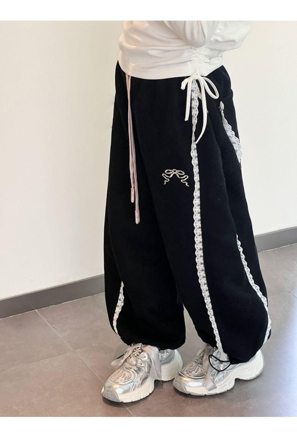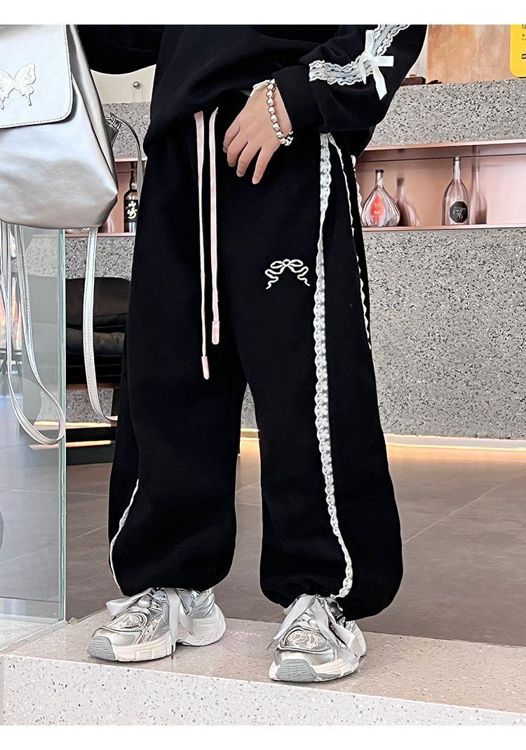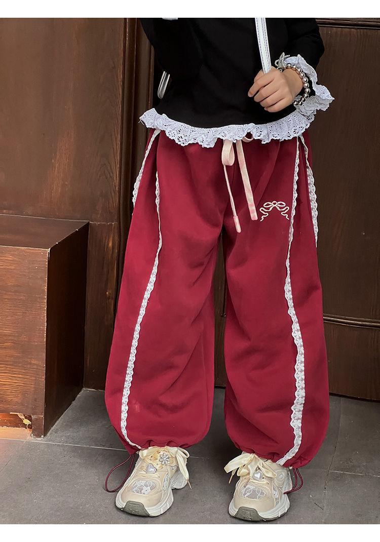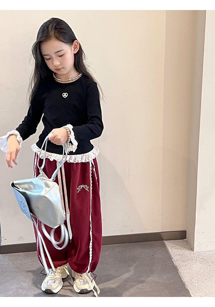 Compra Pantalones casuales coreanos para niñas, versátiles, con lazo al tobillo, para niños, primavera y otoño, nuevos, elegantes, de moda, de encaje, holgados, deportivos, modernos al por mayor en Joom.pro