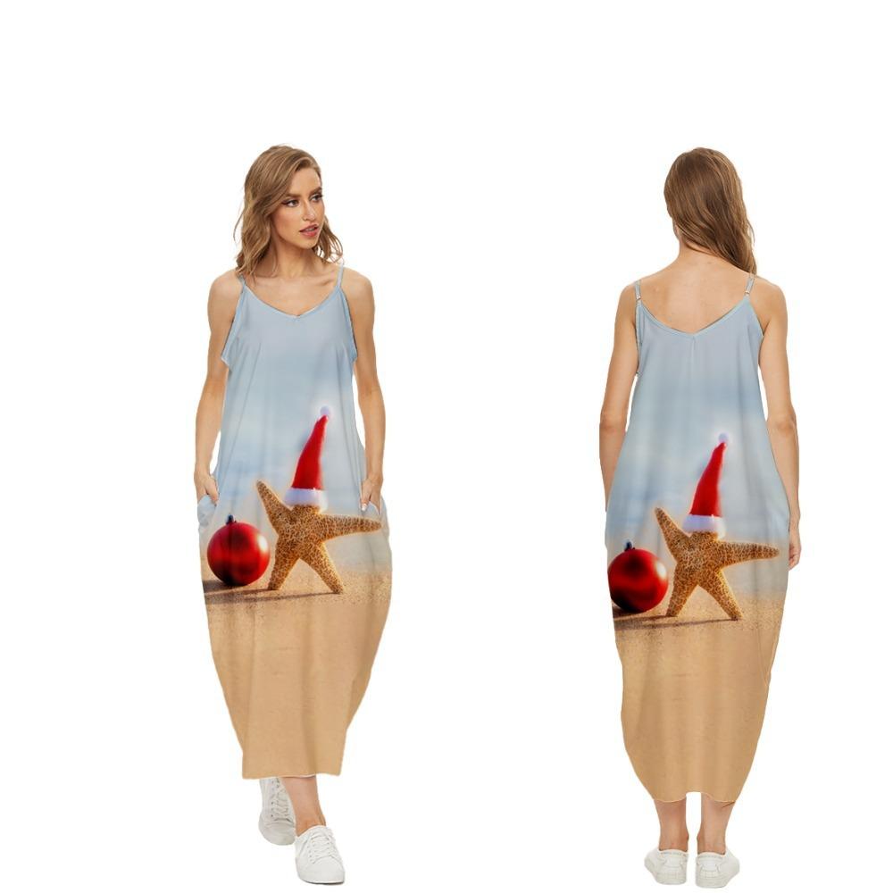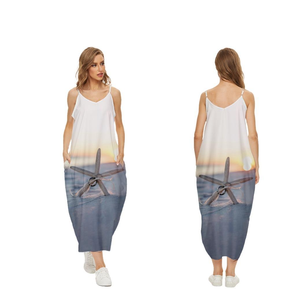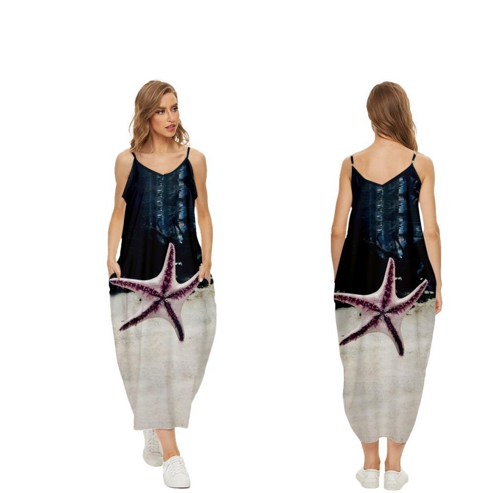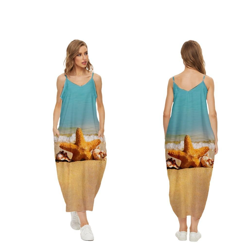 Nuevo vestido de verano fresco y sexy con tirantes teñidos anudados, vestido holgado con estampado digital, ropa de mujer