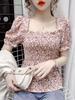 2025 Nuevo Estilo de Verano Francés Dulce Retro Cintura Floral Camisa de Gasa Diseño para Mujer Manga Corta Top de Encaje