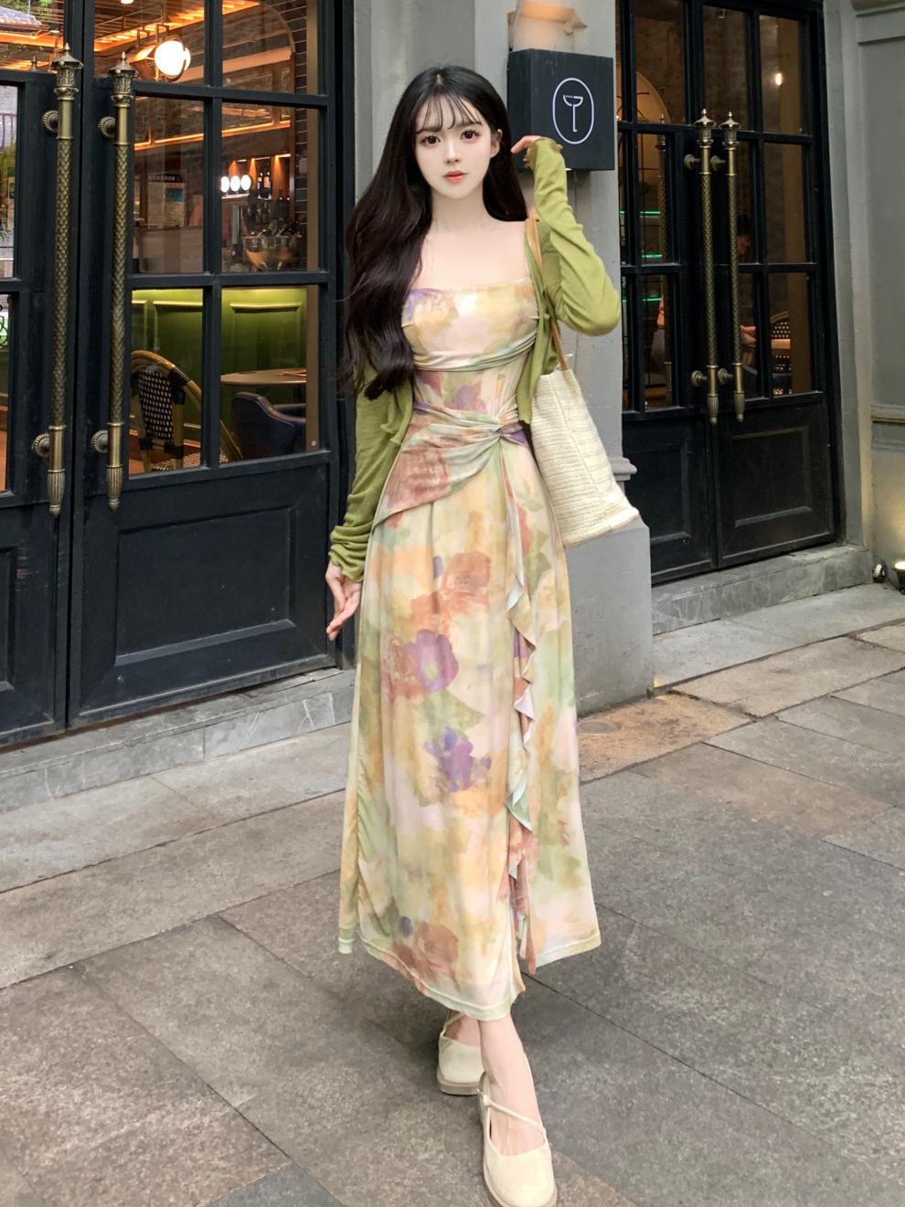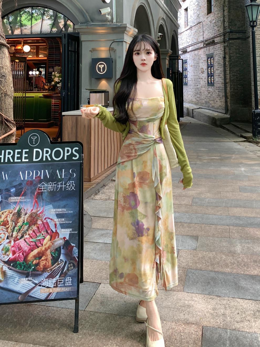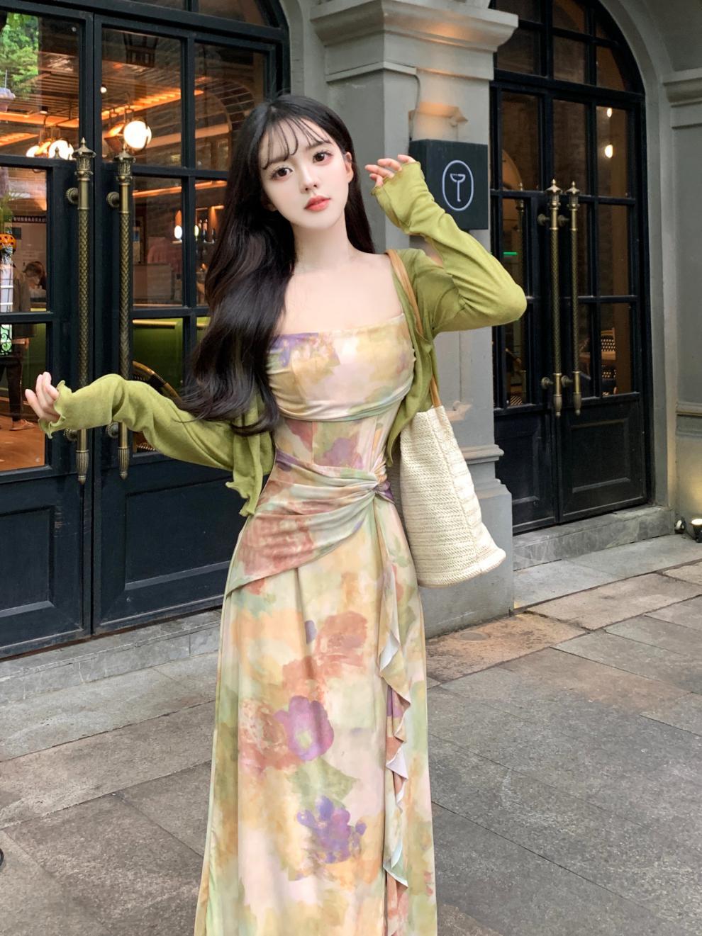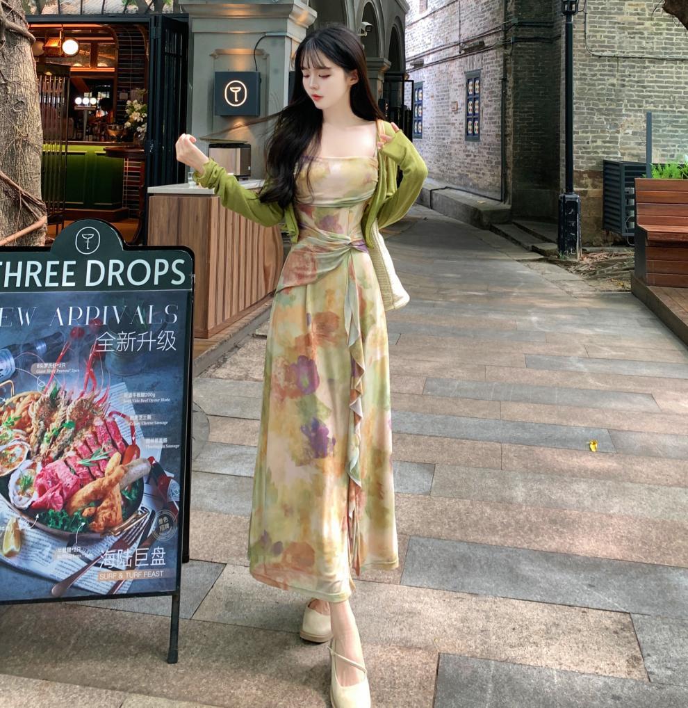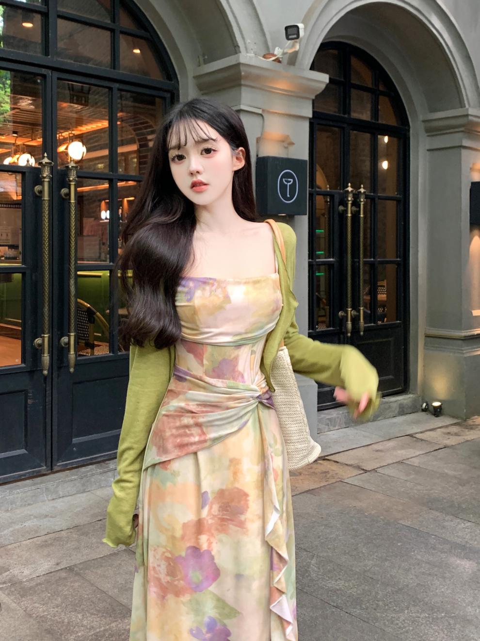 Cardigan, Slip Skirt, Cardigan Two-Piece Sling Set