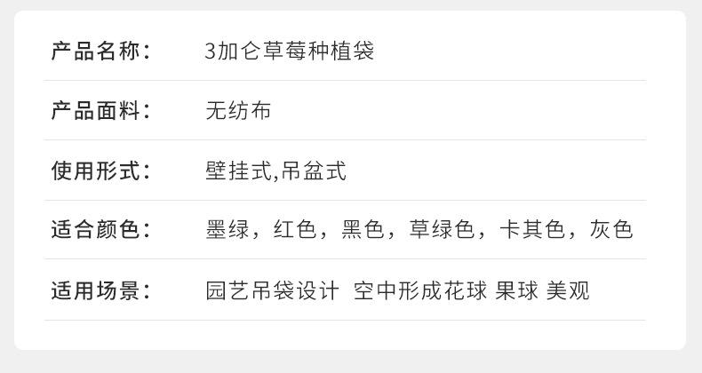 Jardinería aérea al por mayor 10 bolsa de plantación de fresas de 3 galones fieltro no tejido colgante bolsa de plantación de belleza bolsa para plántulas
