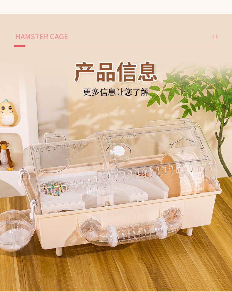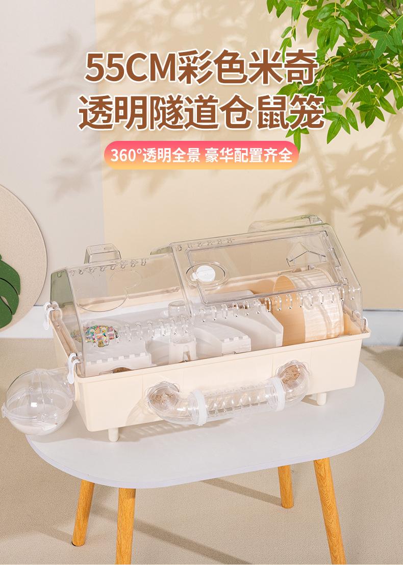 Jaula para hámster transparente de doble capa, 55 cm, jaula básica, nido de oso dorado, tamaño grande, jaula para hámster, estilo villa paisajística, universal para todas las estaciones.