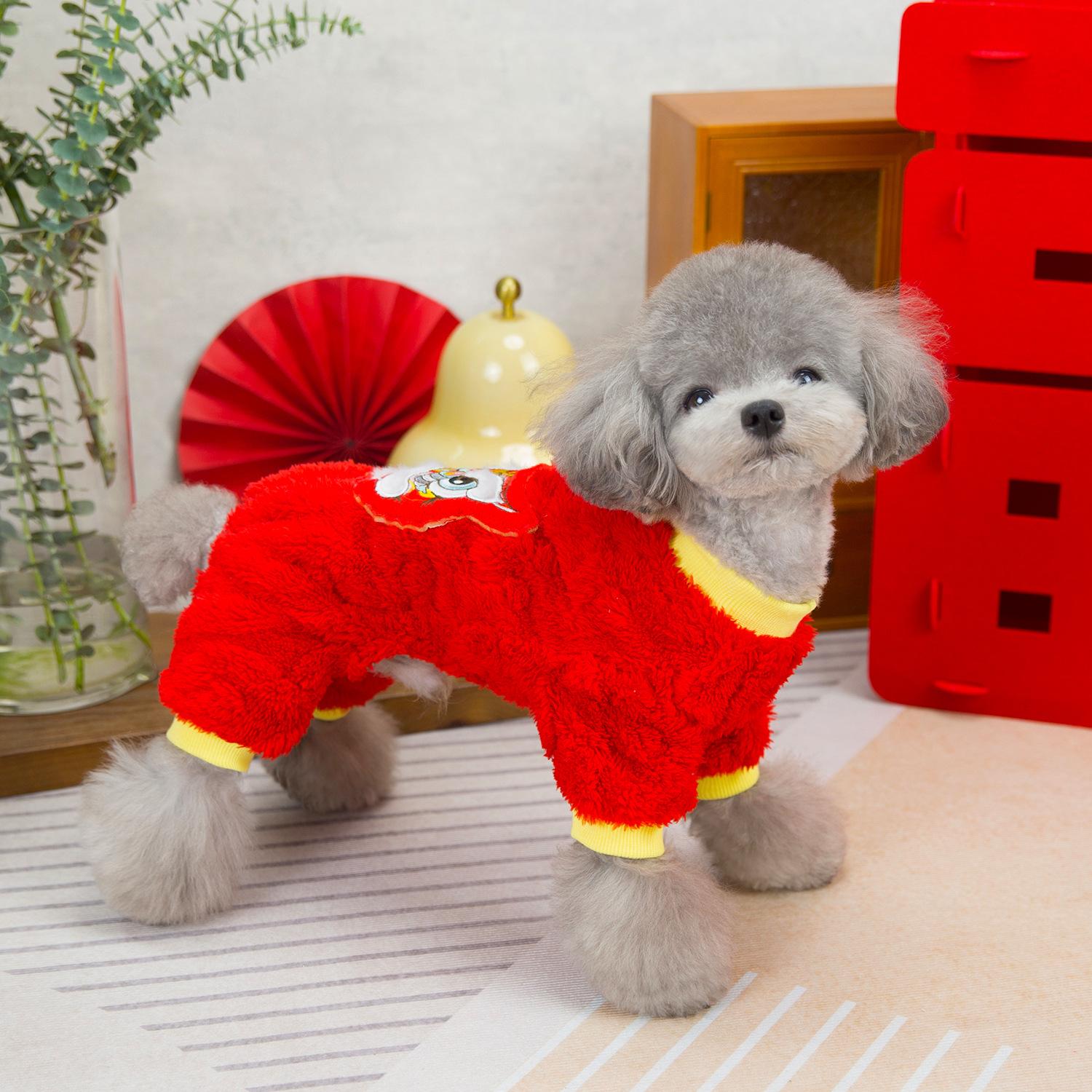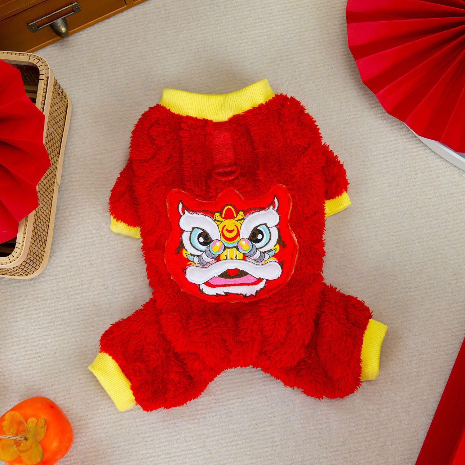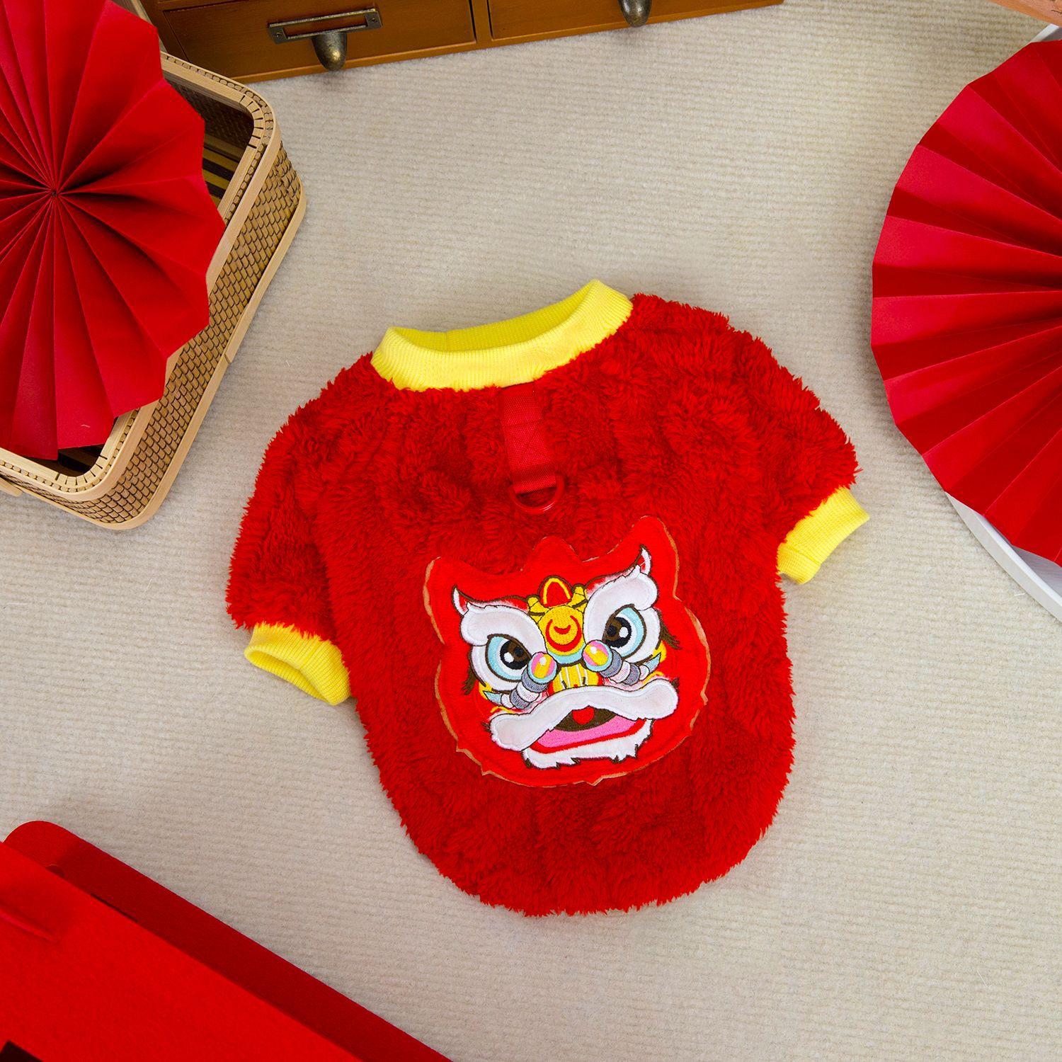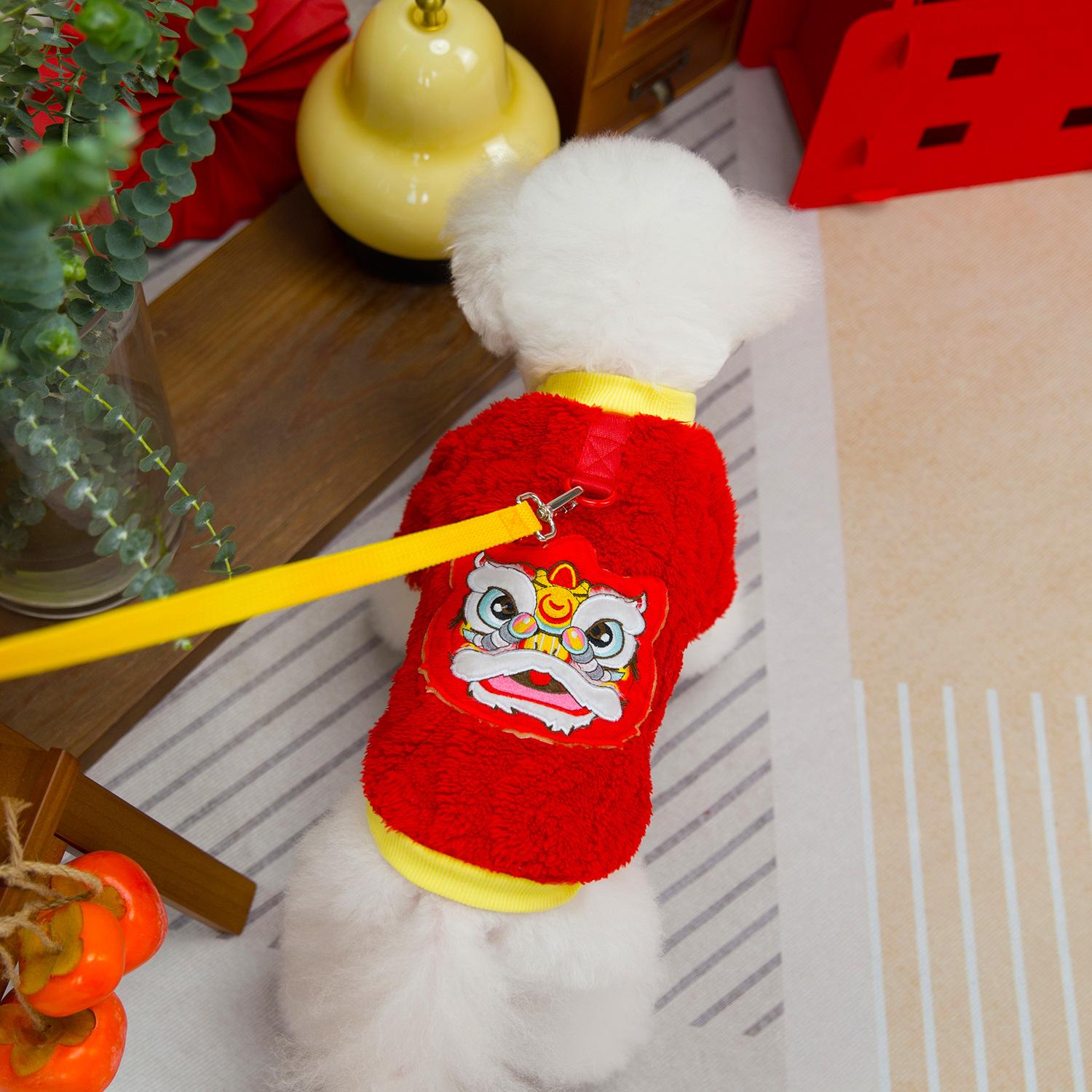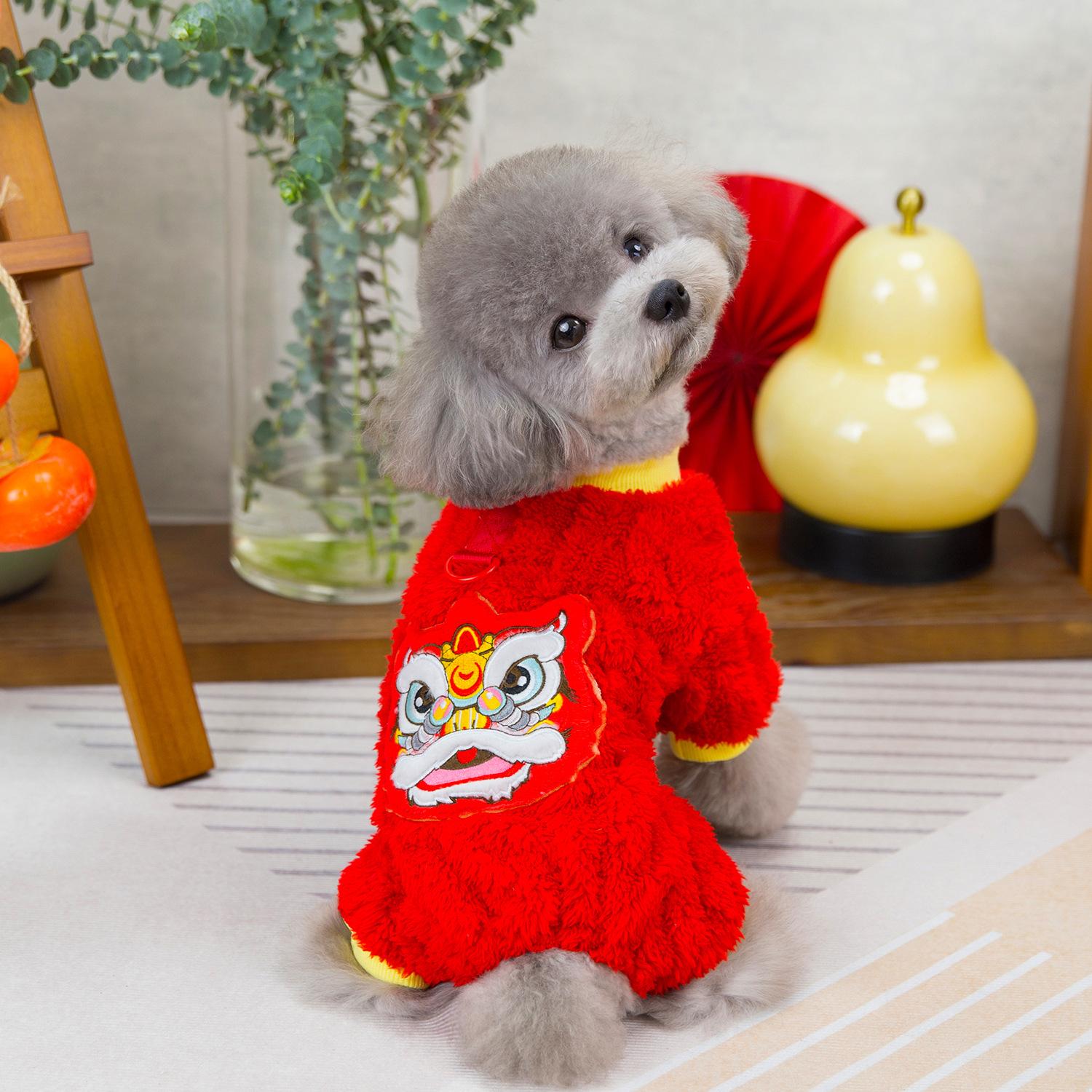Nueva ropa para mascotas, otoño e invierno, para perros, Año Nuevo, festivo, estilo chino, ropa cálida, Año Nuevo, danza del león, forro polar para mascotas.