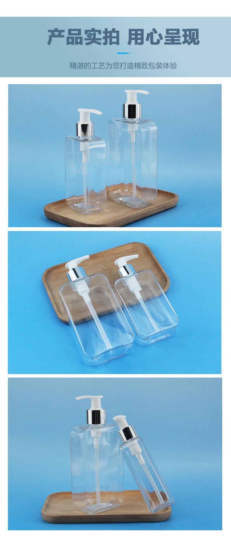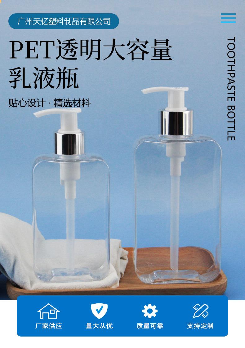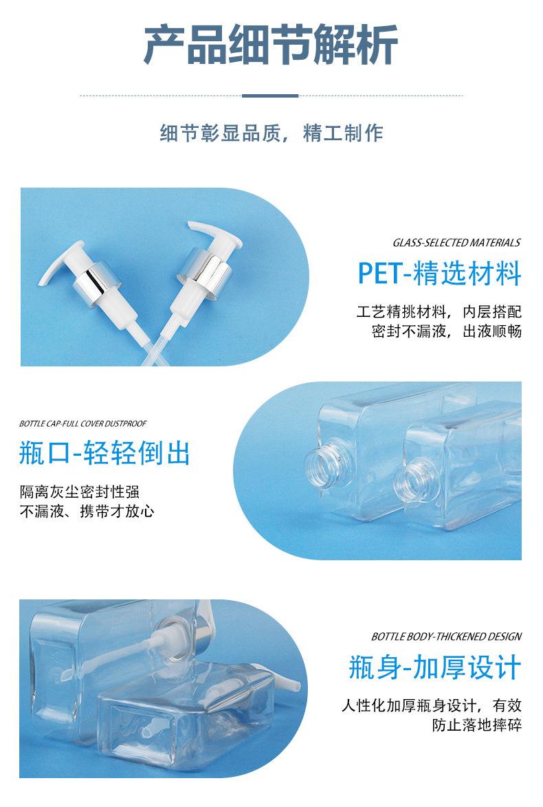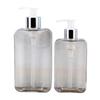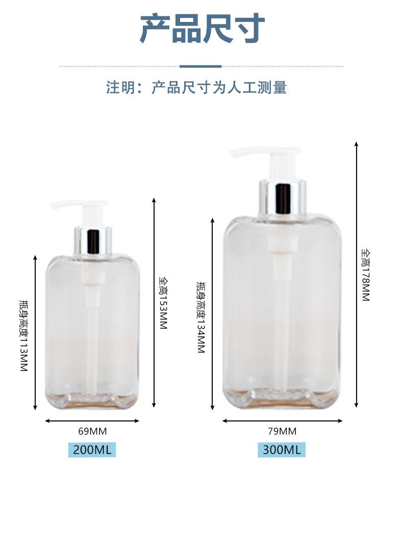 Botella cuadrada plana de 200 ml tipo prensa para champú y gel de ducha, botella vacía dispensadora de loción de material PETG de 300 ml
