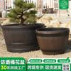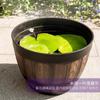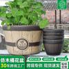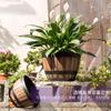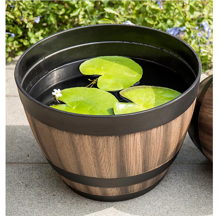 Barril de Madera Imitación Resina Plástica Engrosada Universal Barril de Vino Barril de Madera Maceta de Plástico Antigua Interior y Exterior Balcón Rosa Hortensia Planta Verde