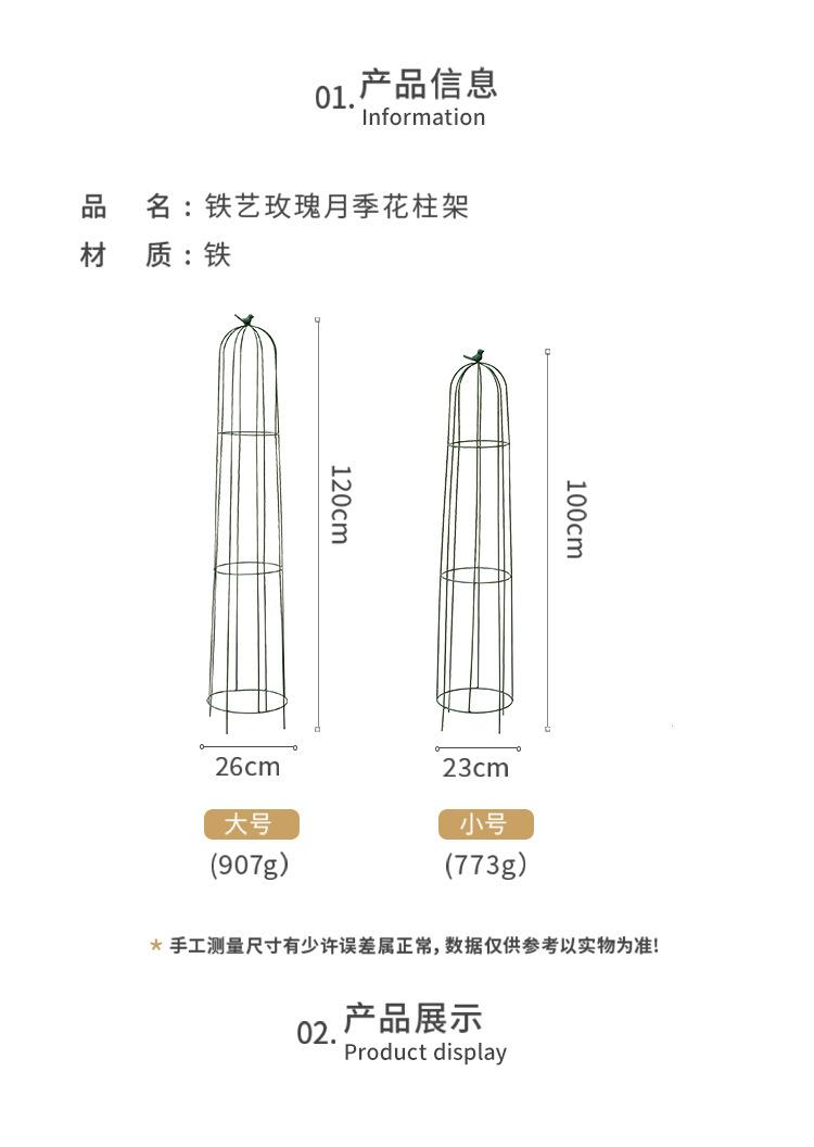 Rosa de Hierro Soporte de Columna de Rosas Clematis Trepadora Pérgola Soporte para Plantas Trepadoras Macetero Soporte Poste Jaula para Pájaros