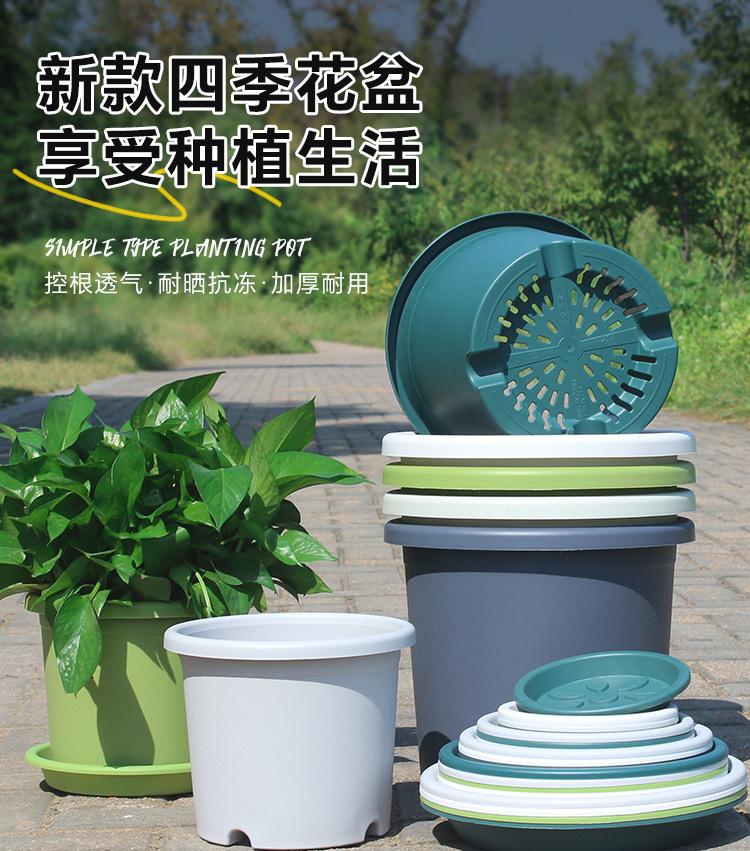 Maceta de flores de cuatro estaciones, estilo nórdico, sencilla, de un galón, grande, rosa verde, de resina plástica, venta al por mayor