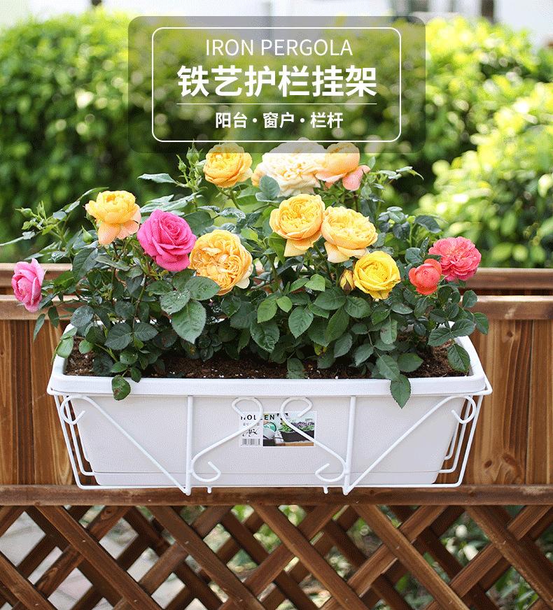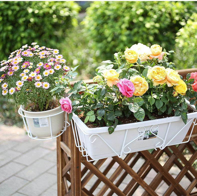 Percha de hierro forjado de plástico para barandilla de balcón, maceta, estante para flores, suministros de jardinería, soporte para macetas de flores y verduras