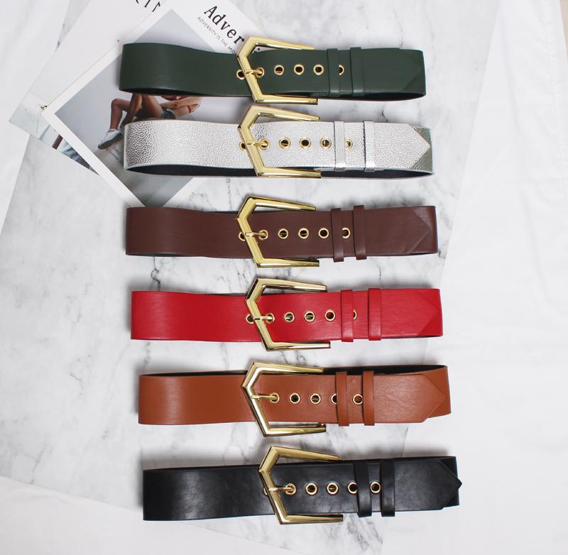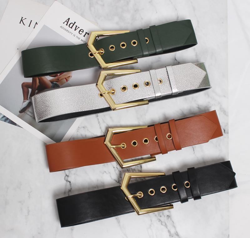 Cinturón europeo y americano Cinturón ancho para mujer Moda europea y americana Vestido decorativo que combina con todo Cinturón retro con hebilla cuadrada Cinturón negro