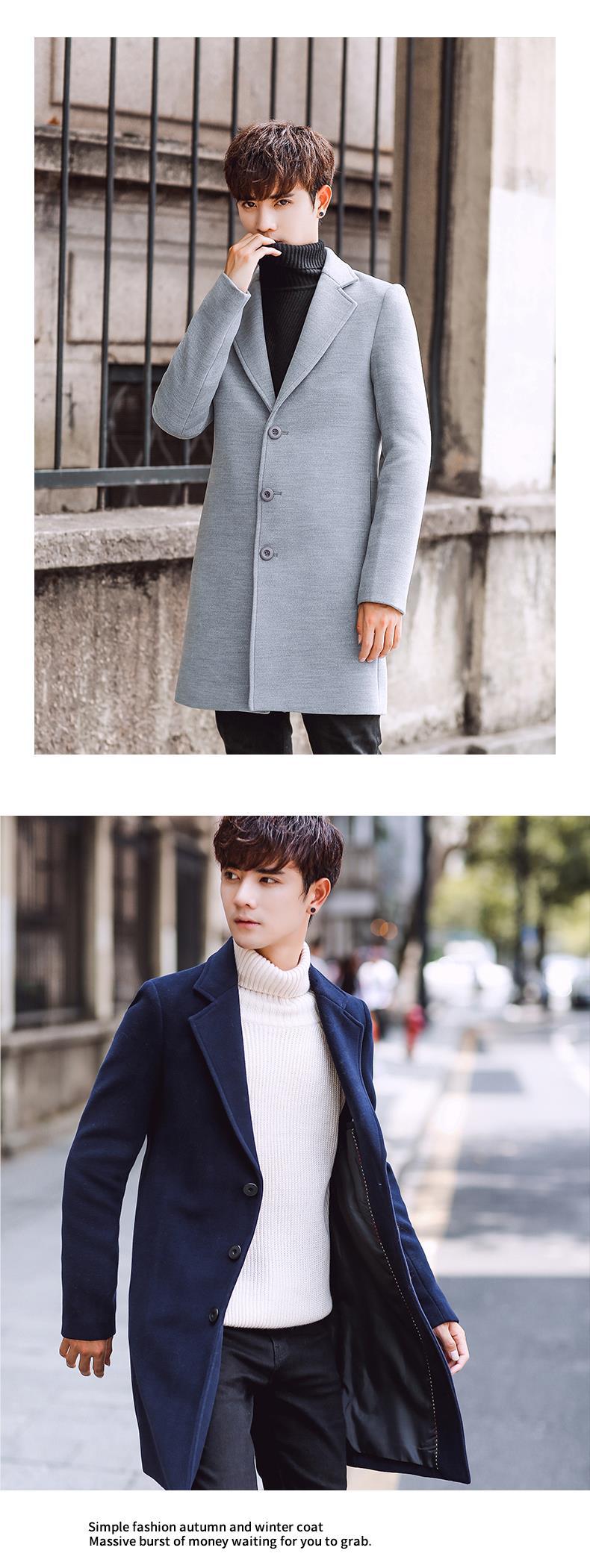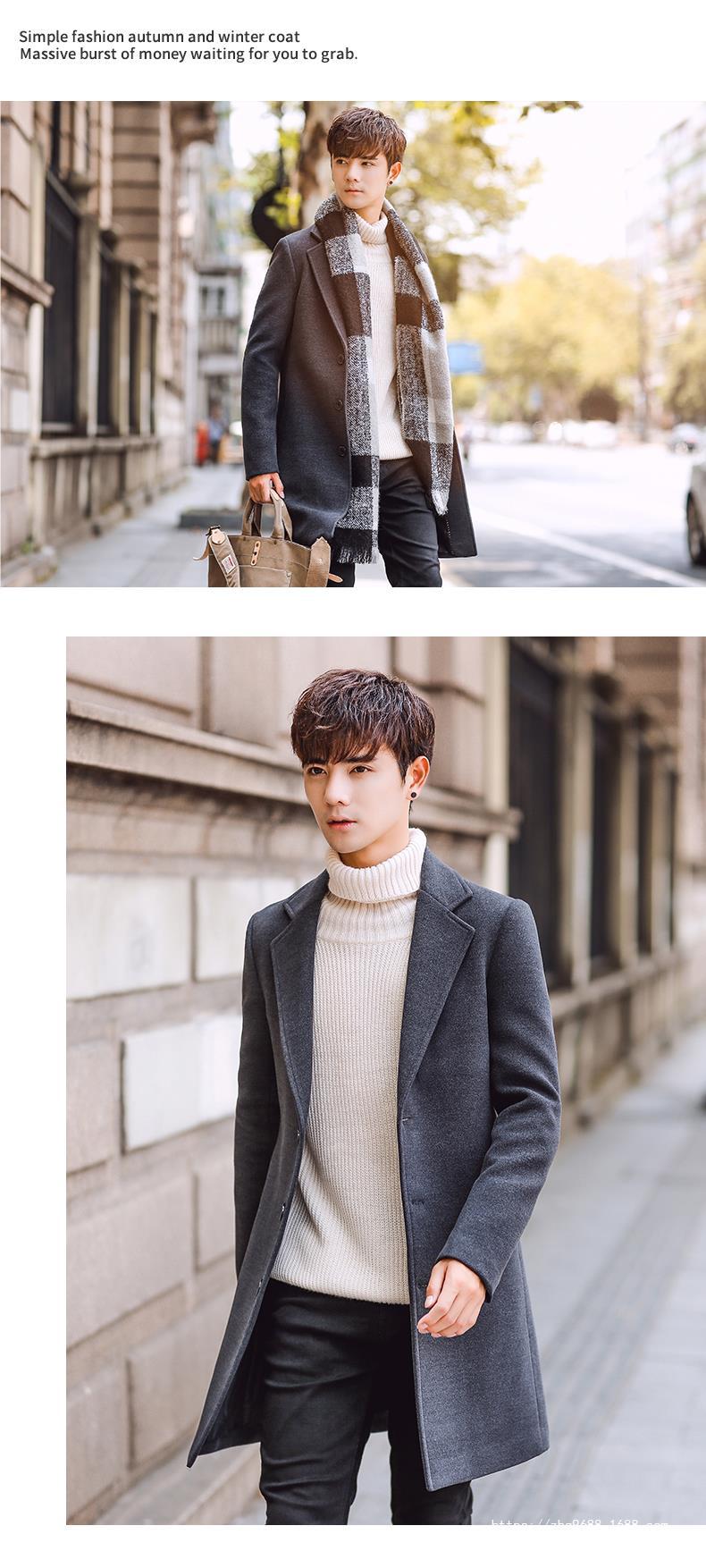 Gabardina para hombre Ge Hua, primavera y otoño, nueva y elegante, de longitud media, estilo coreano, abrigo de lana grueso y ajustado para invierno.