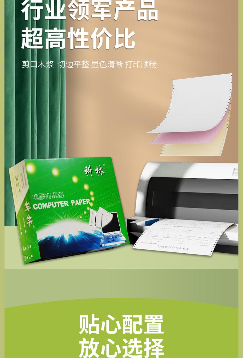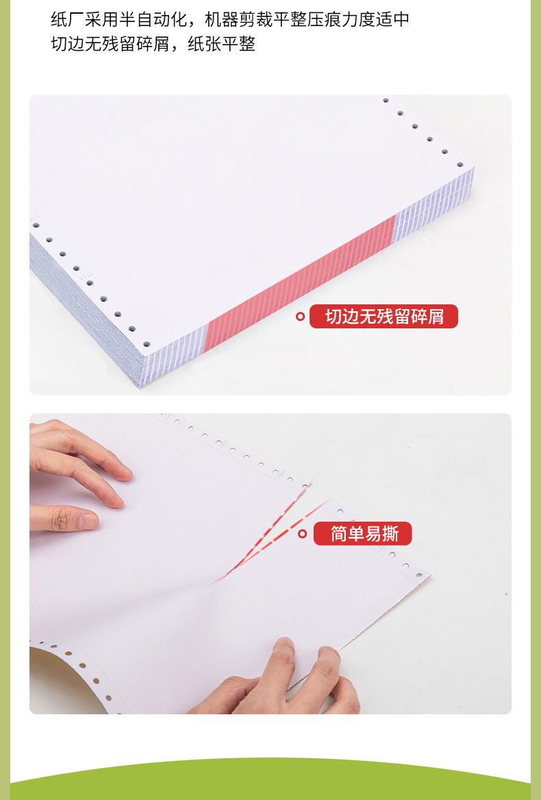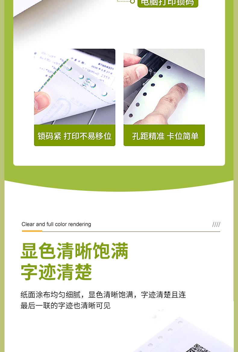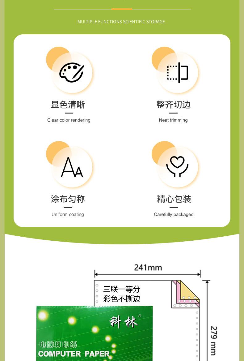 Colin (kelin) Papel de impresión Colin verde, triple sección, borde antidesgarro, papel para impresión por computadora, color