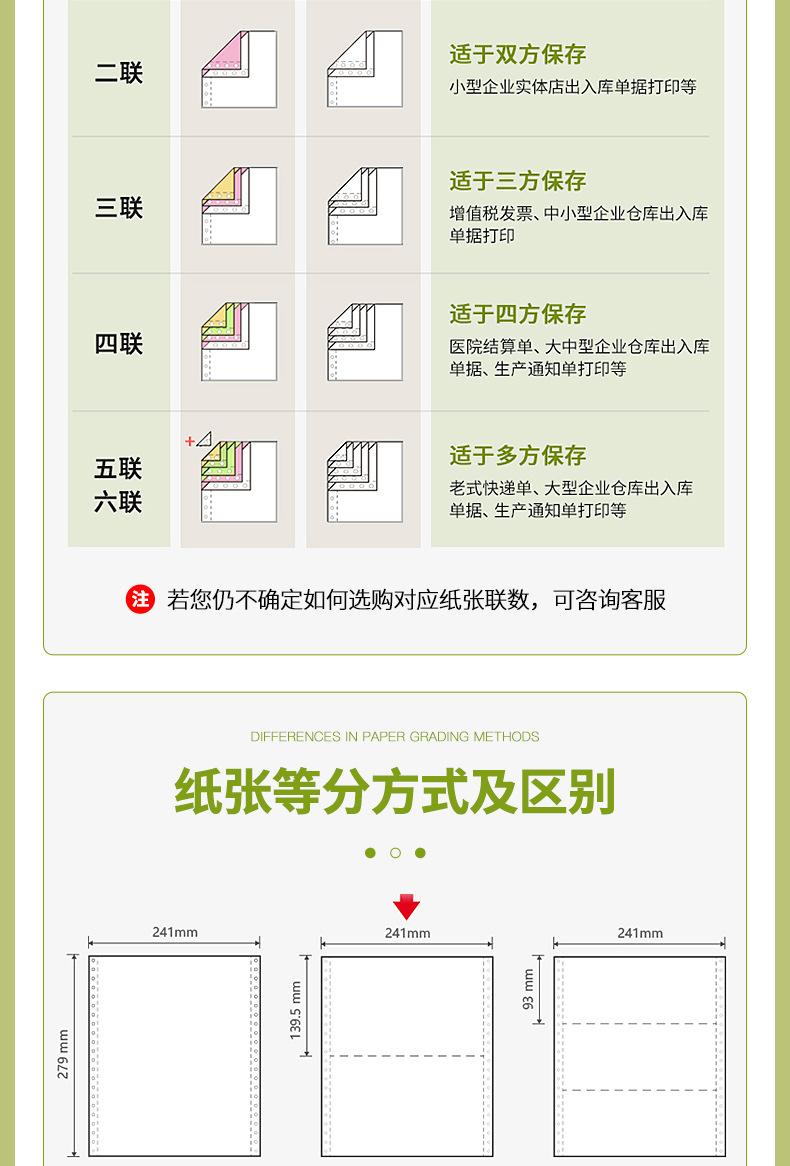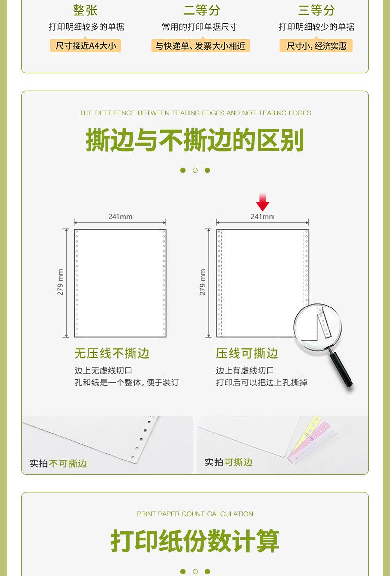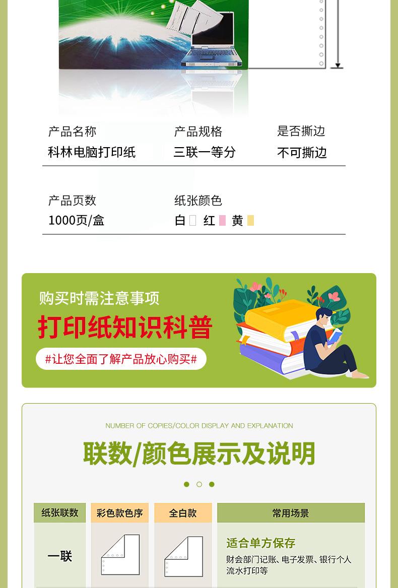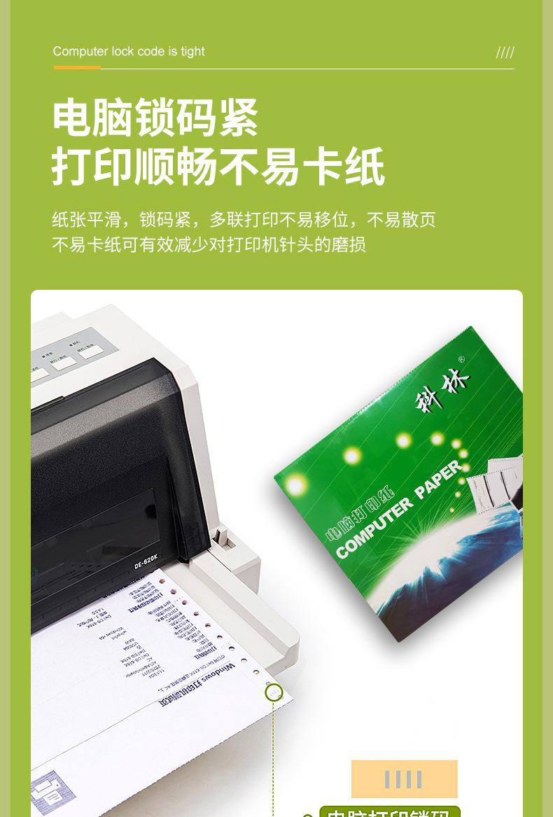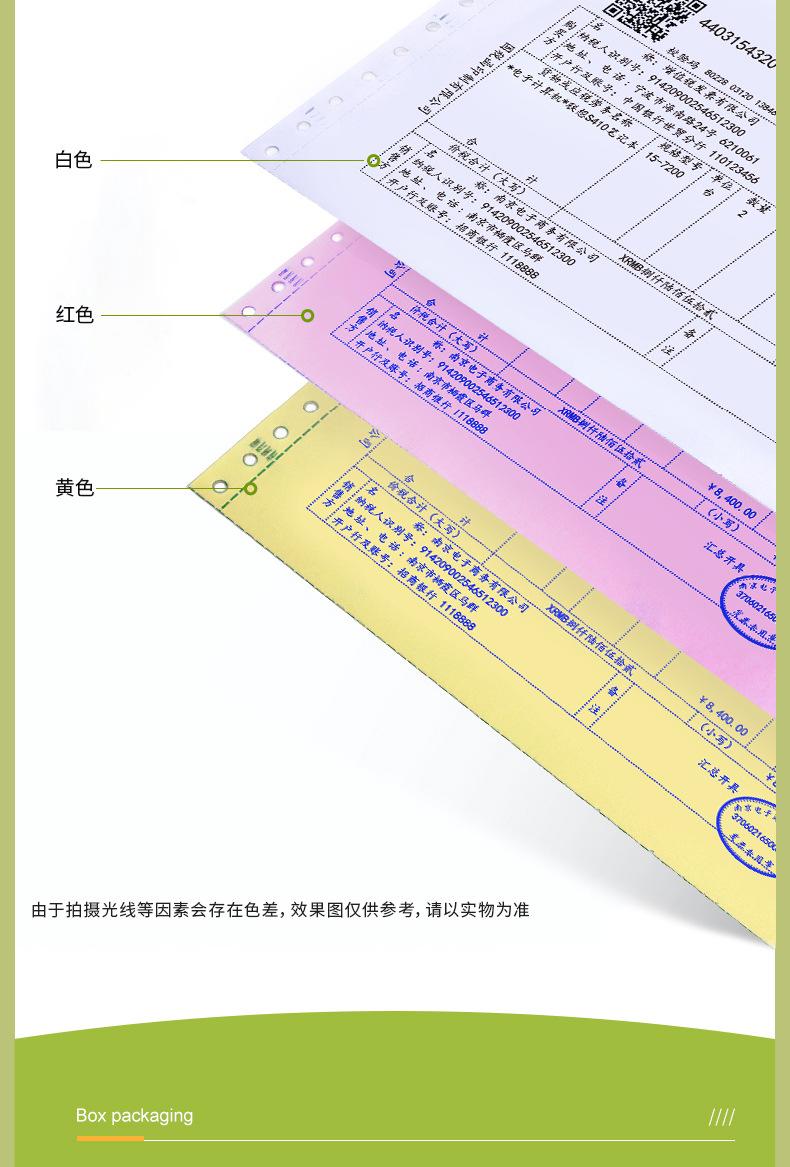 Colin (kelin) Papel de impresión Colin verde, triple sección, borde antidesgarro, papel para impresión por computadora, color
