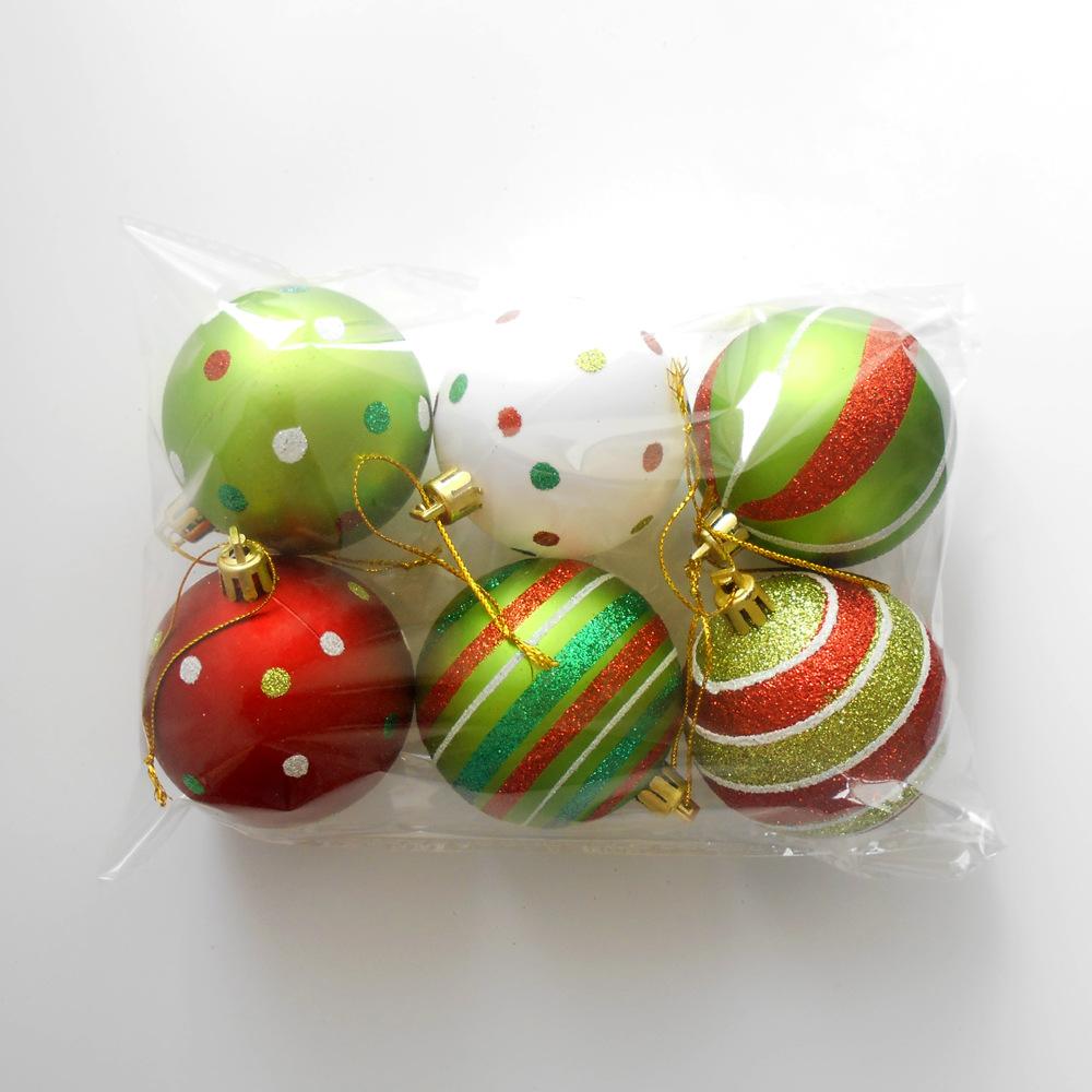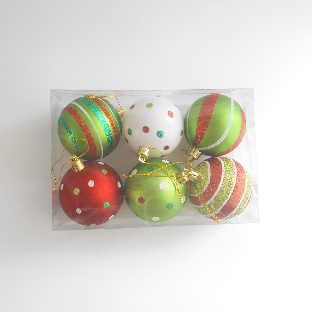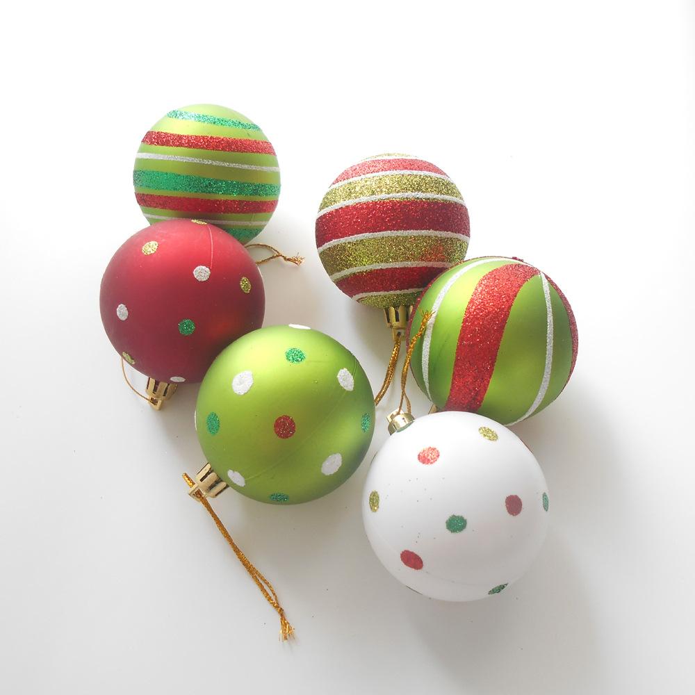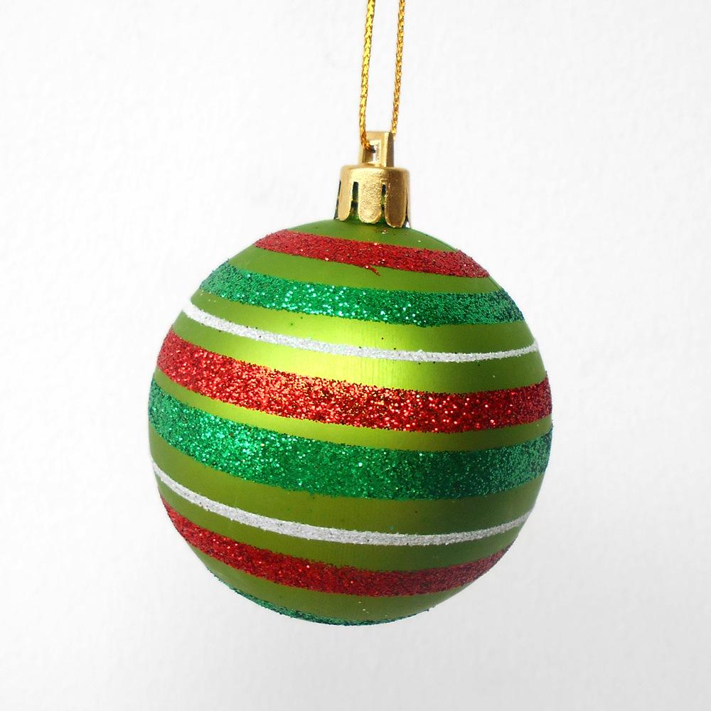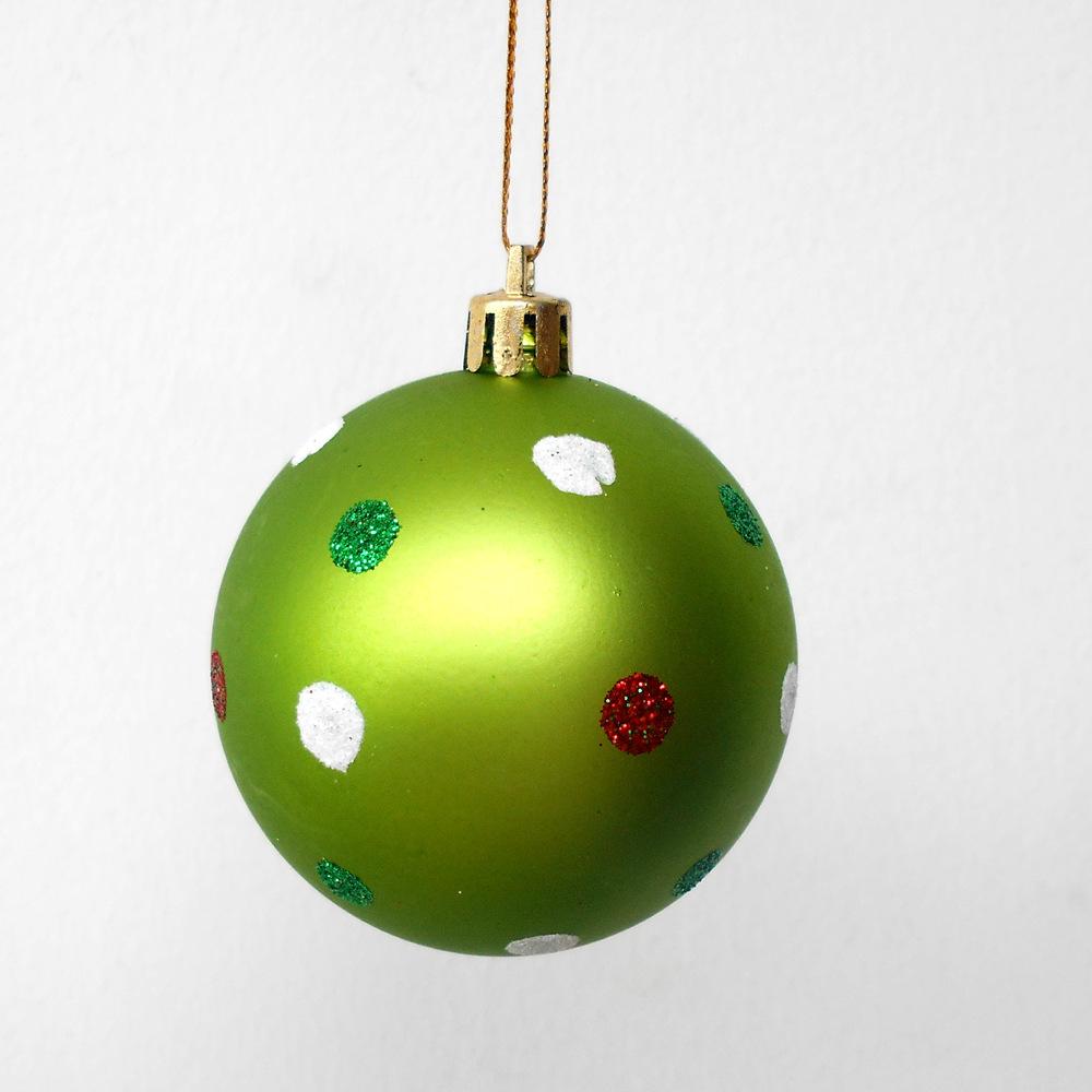 Bola navideña navideña de 6 cm pintada a mano, color verde Grinch, para árbol de Navidad, de plástico, plateada.