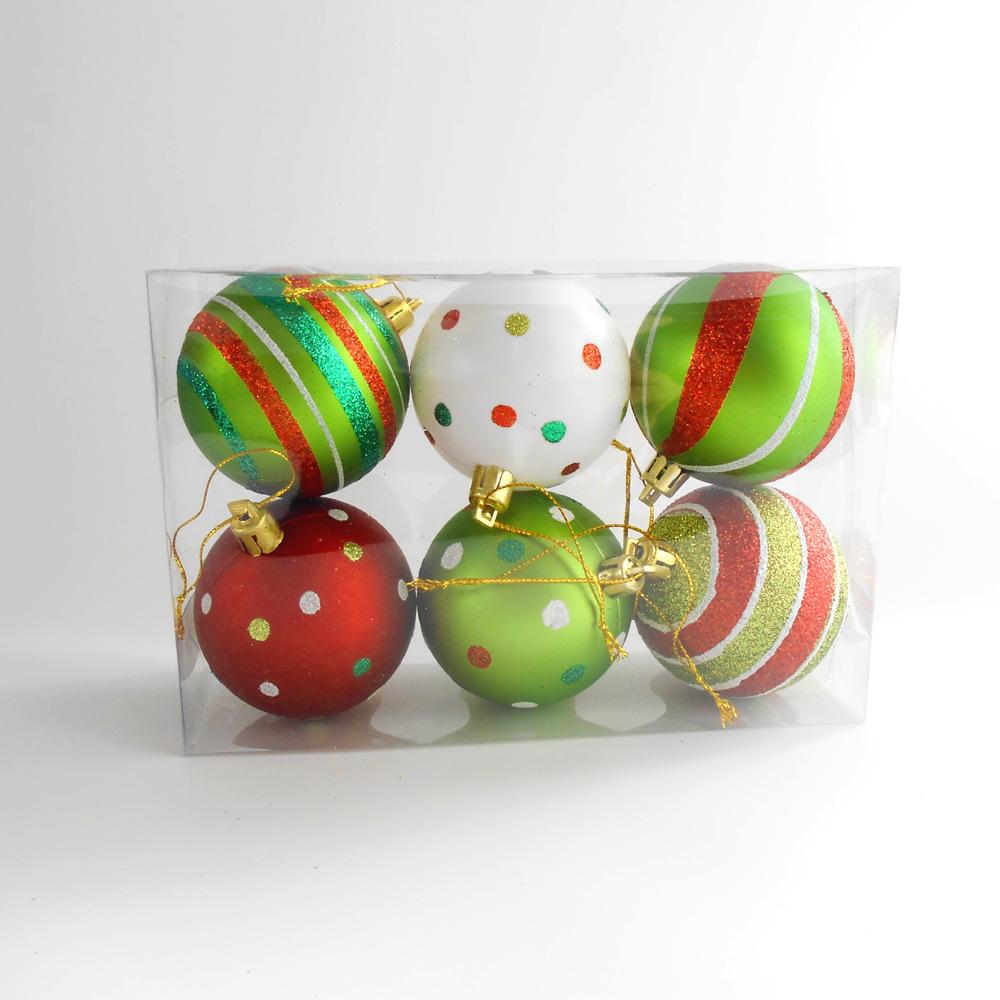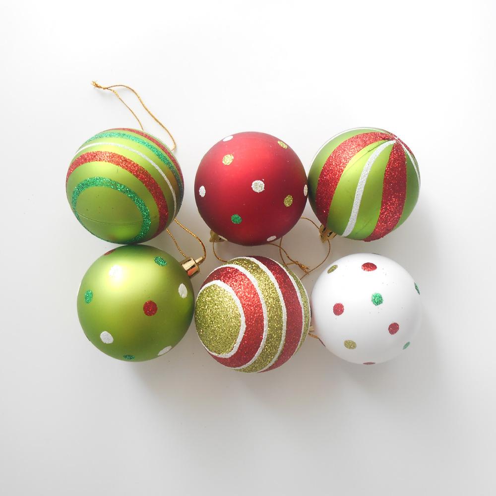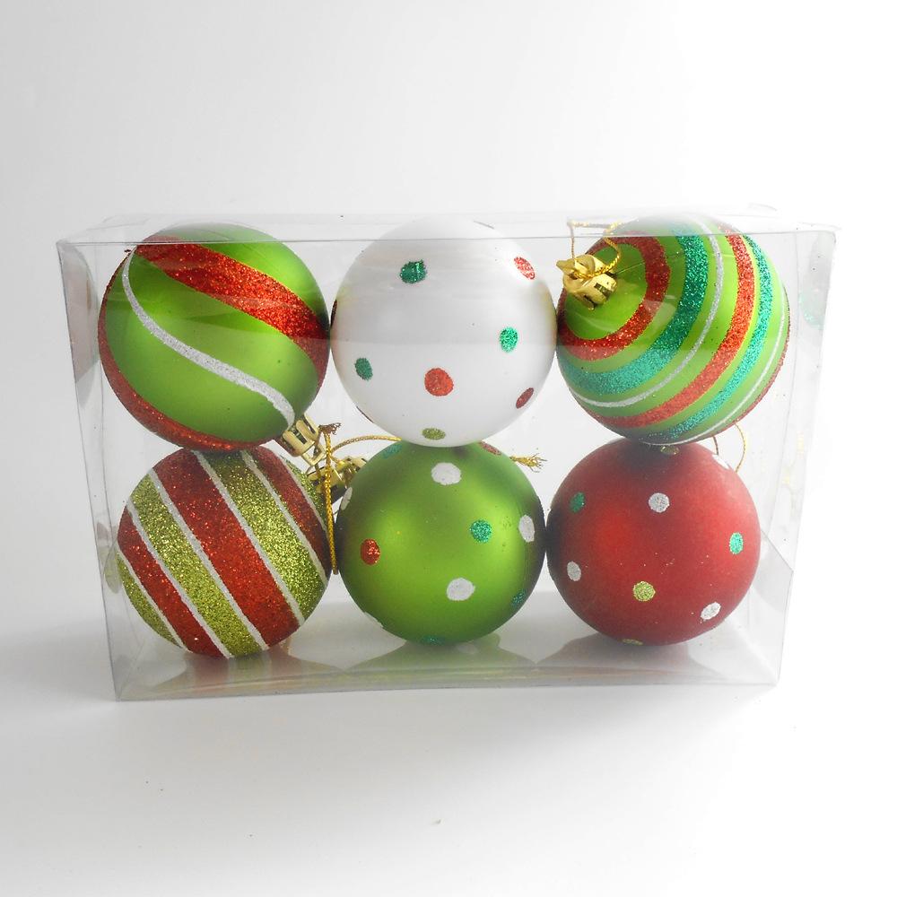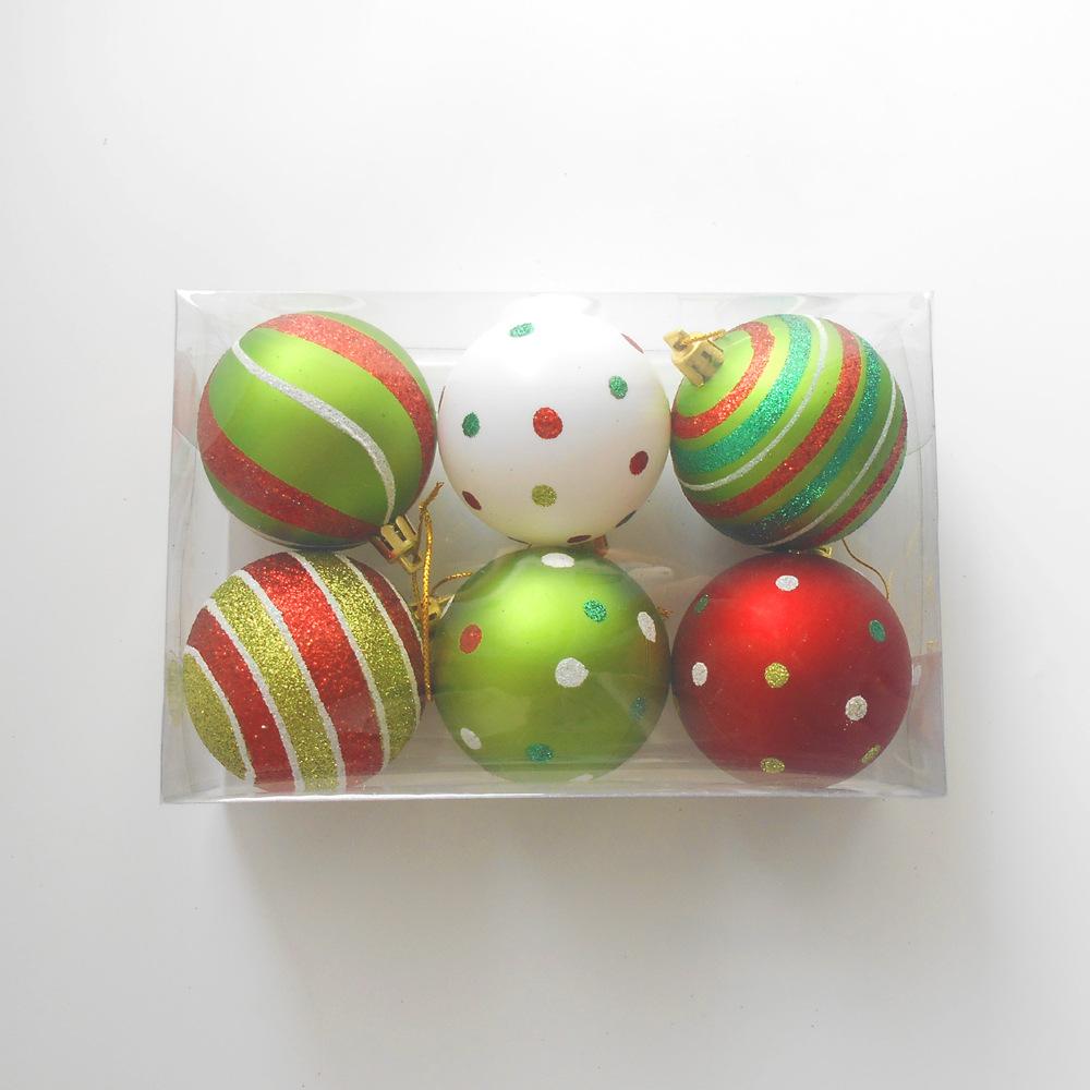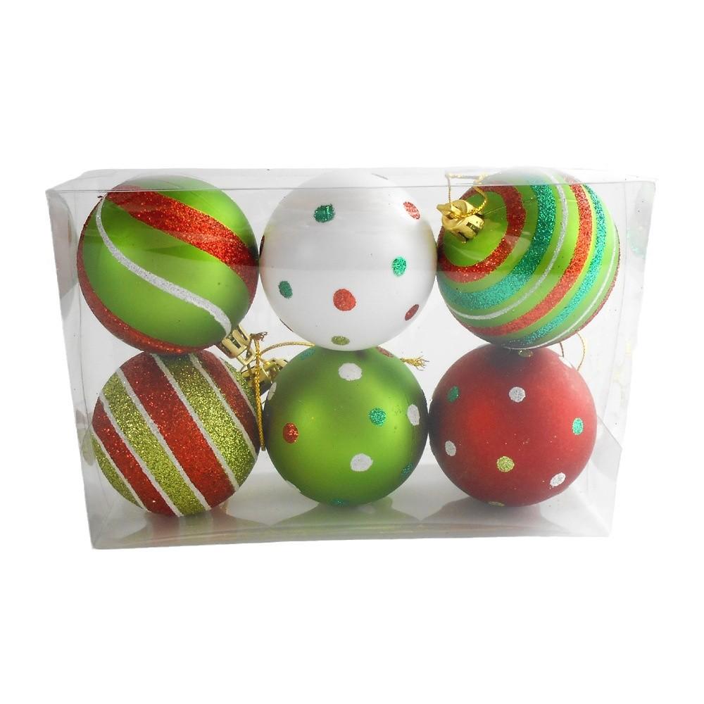 Bola navideña navideña de 6 cm pintada a mano, color verde Grinch, para árbol de Navidad, de plástico, plateada.