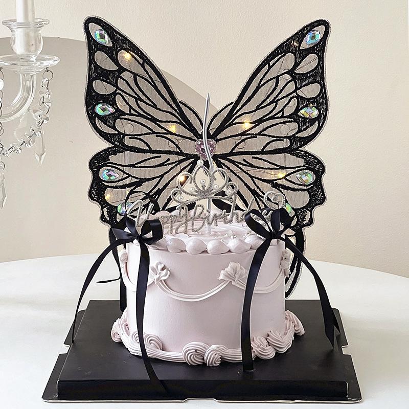 Compra Decoraciones para Pastel de Cumpleaños de Diosa Celebridad de Internet Hermoso Bordado con Adornos de Mariposas Negras Claras Corona de Perlas Vestido para Hornear al por mayor en Joom.pro