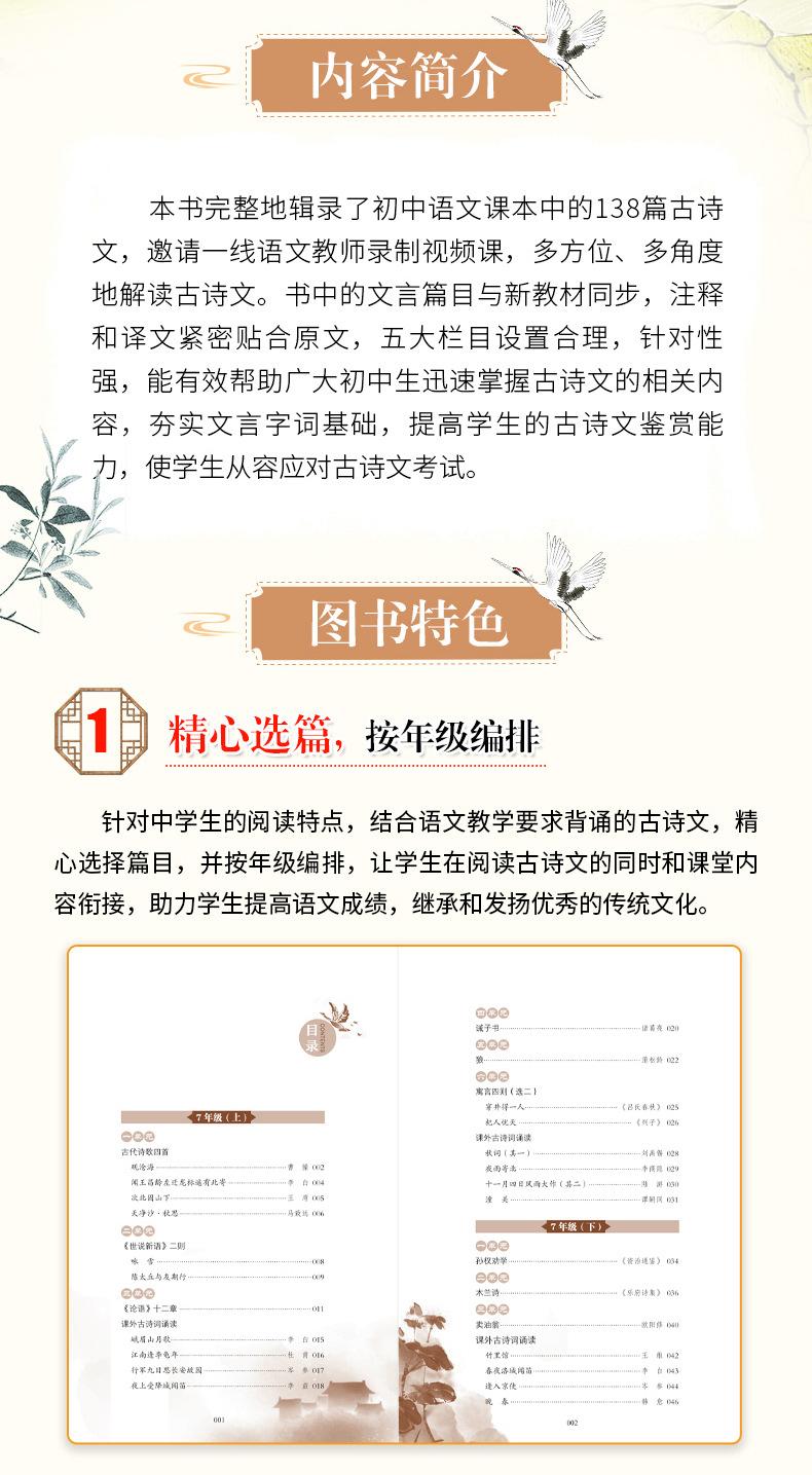 [hot-selling] a comprehensive explanation of classical chinese for junior middle school students + must memorize ancient poems, 2 books + universal for junior high school students