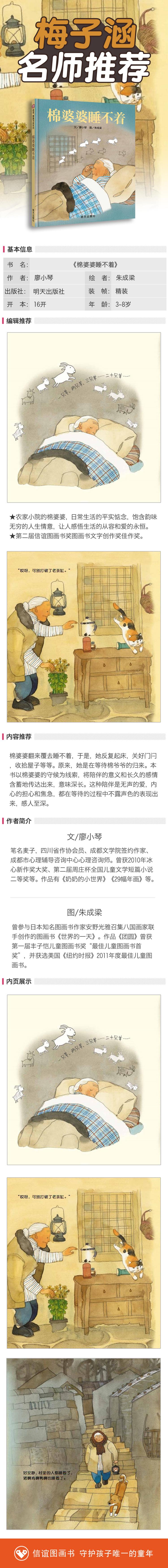 La abuela Mian daba vueltas en la cama y no podía dormir, así que se levantó repetidamente, cerró la puerta, limpió la casa, etc. Resultó que estaba esperando que el abuelo Mian regresara. Este libro utiliza la espera de la abuela Mian como una pista para transmitir implícitamente el significado de compañerismo y sentimientos duraderos, lo cual es profundo. Este tipo de compañerismo es amor silencioso, y la preocupación y la ansiedad internas se expresan silenciosamente en el proceso de espera, lo cual es profundamente conmovedor.