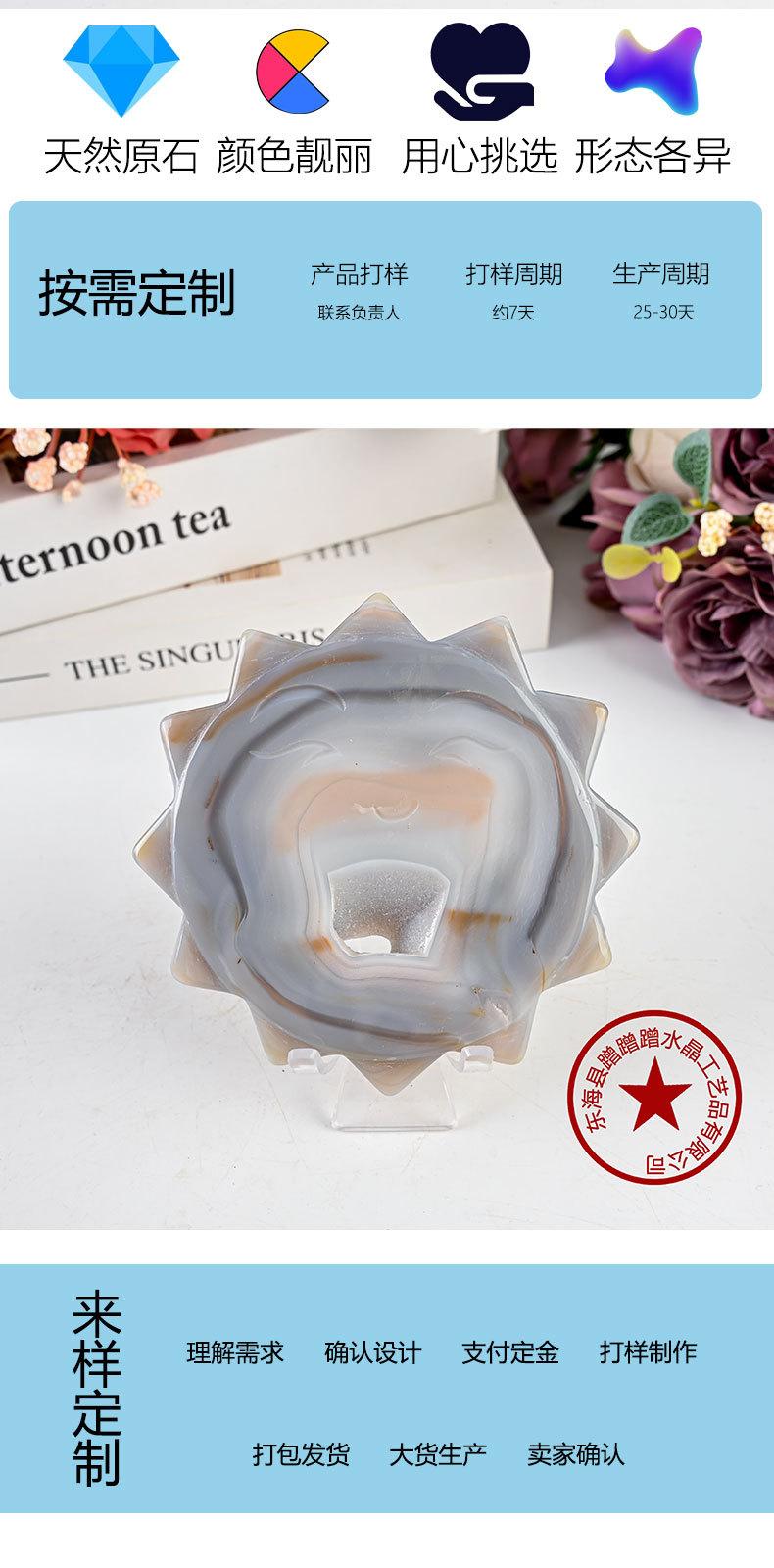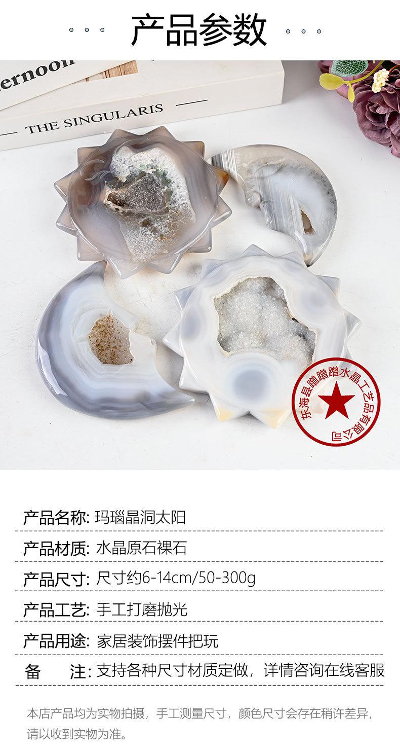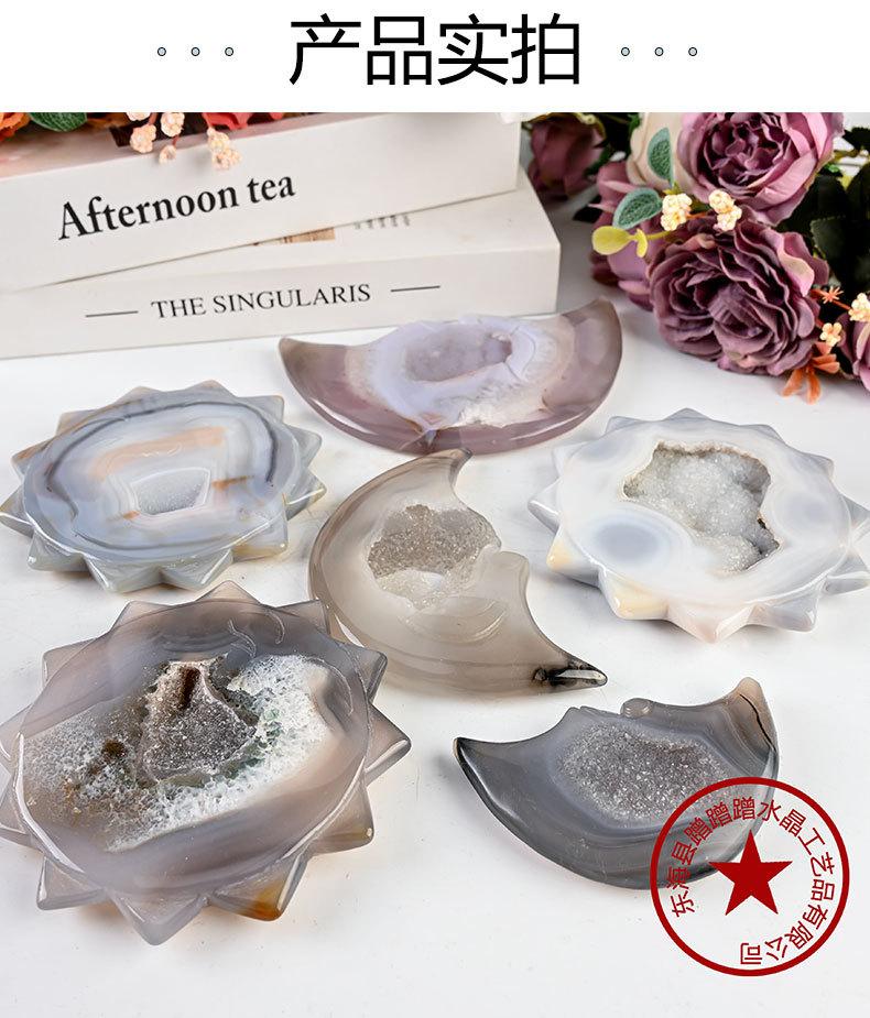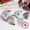 Cueva de ágata natural con forma de girasol y luna tallada, piedra original, cristal pulido, artesanías, adornos decorativos para el hogar.