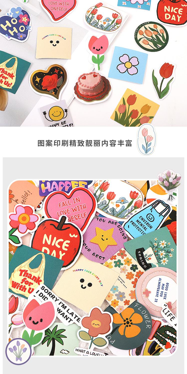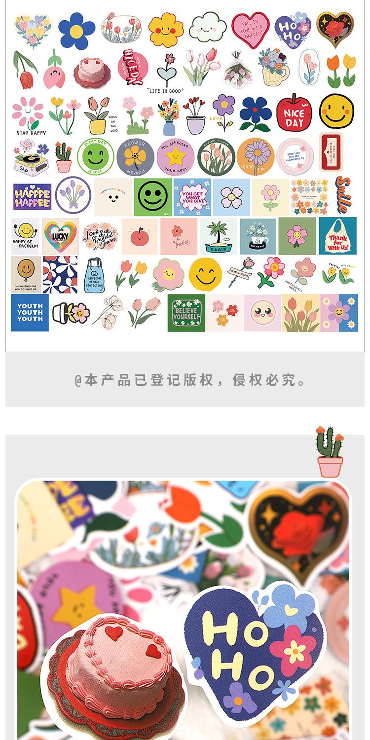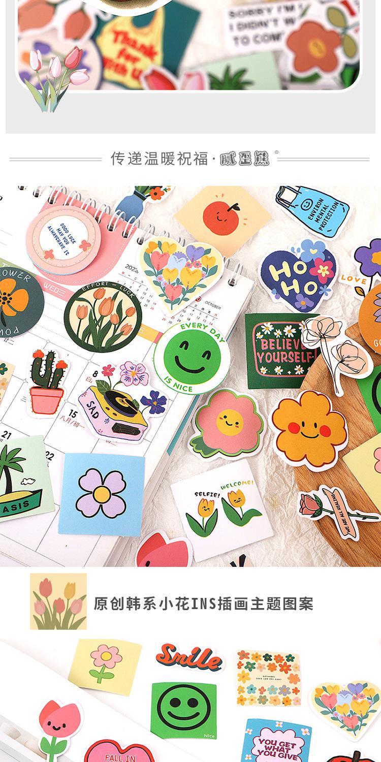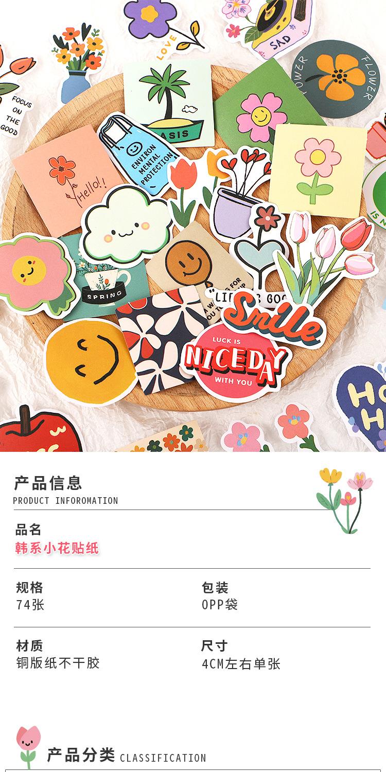 Compra 74 Adhesivos coreanos lindos, pequeños y frescos, de flores pequeñas y caras sonrientes, estilo ins, material para decoración de cuadernos y cuentas a mano al por mayor en Joom.pro