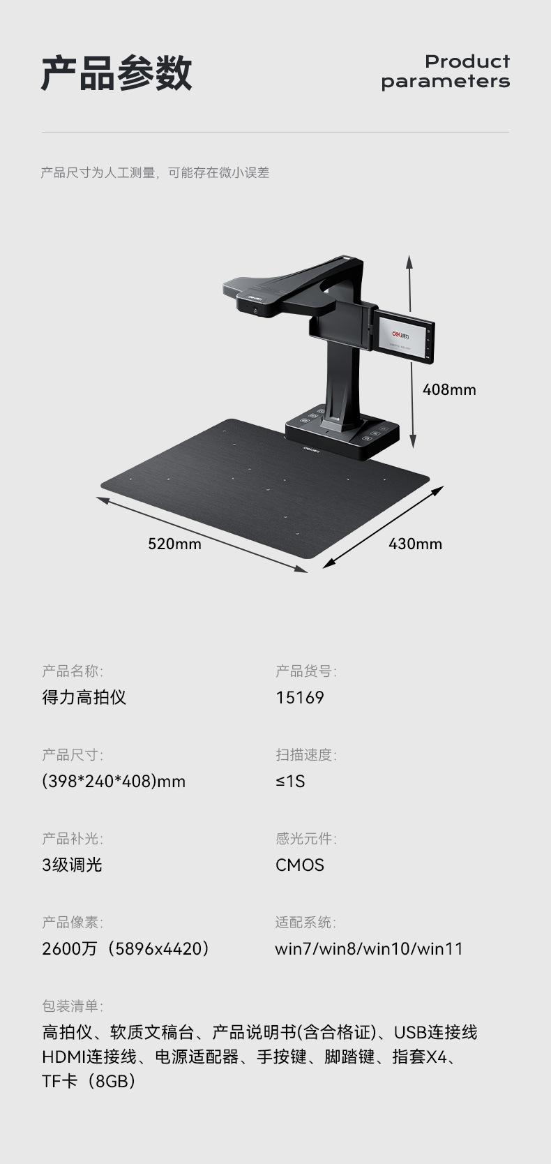 Escáner rápido continuo de alta definición Deli 15169 para documentos de oficina docentes profesionales
