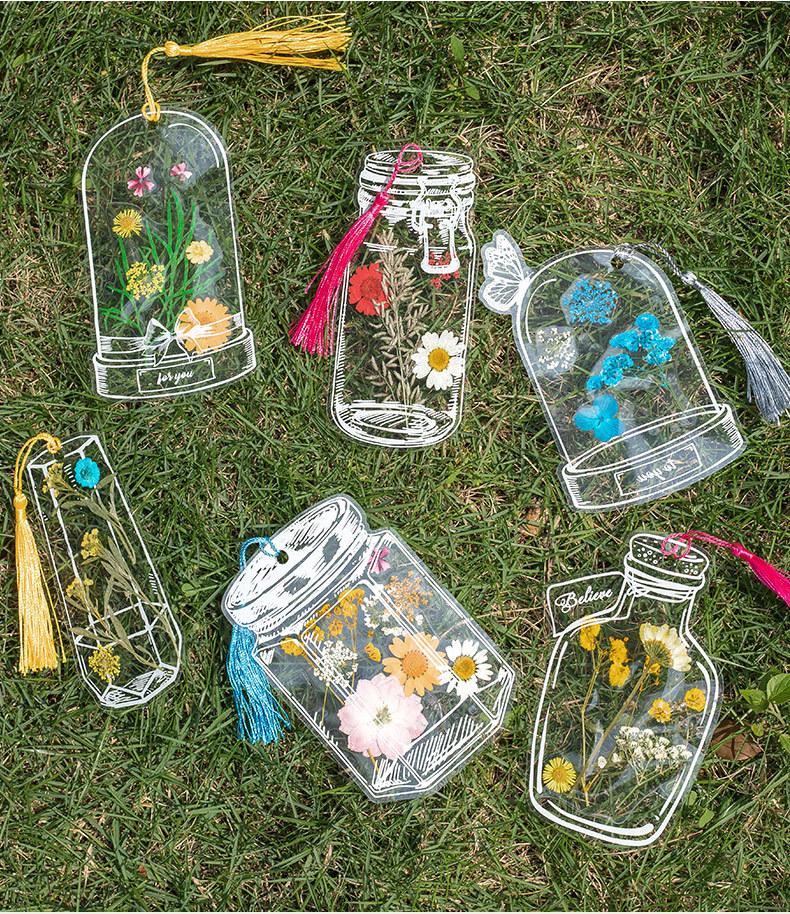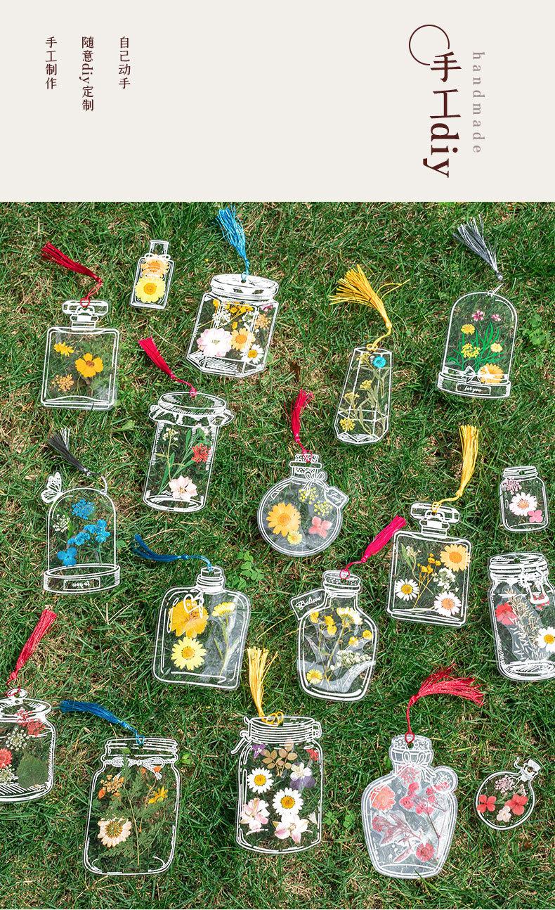 Botella de Vidrio Transparente Marcador de Flor Seca Película Paquete de Materiales Hechos a Mano Lindo Profesor Profesor Recompensa Producción Jardín de Niños Hecho a Mano