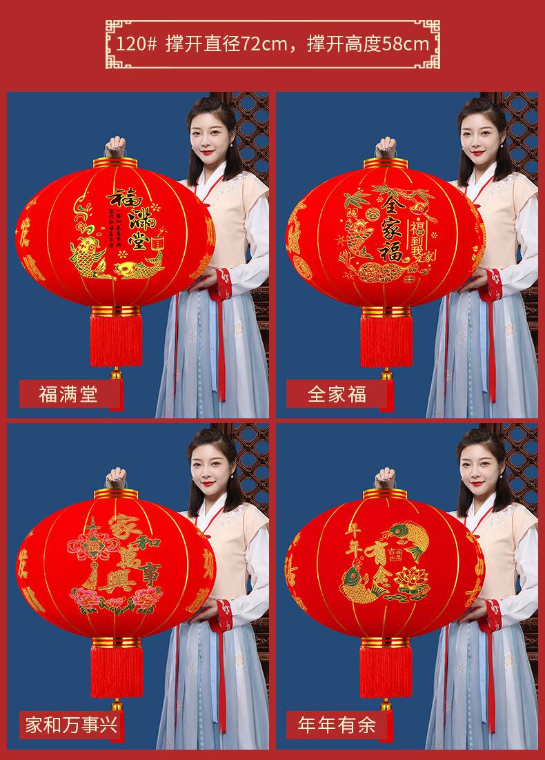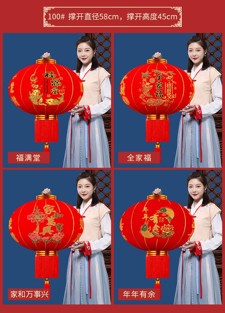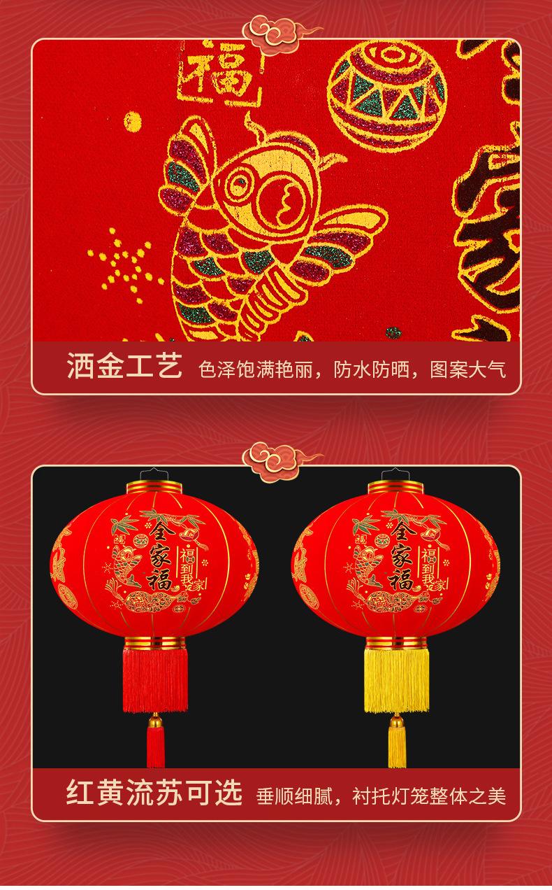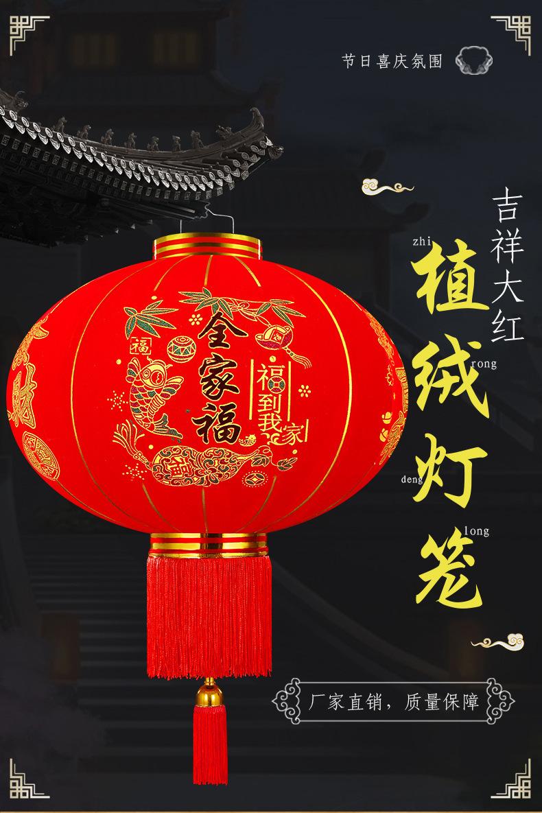 Venta al por mayor de fábrica Linterna Roja Flocada Linterna Publicitaria Festival de Primavera Año Nuevo Decoración Linterna Exterior Impermeable Linterna de Palacio
