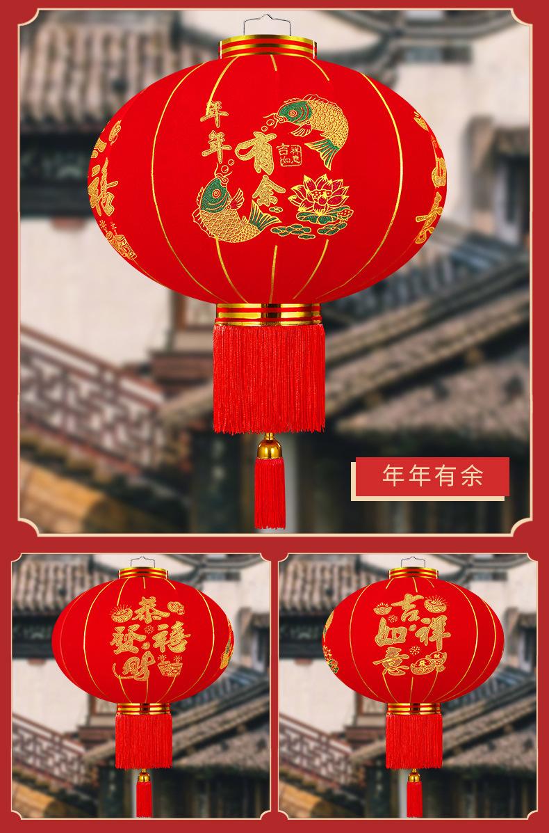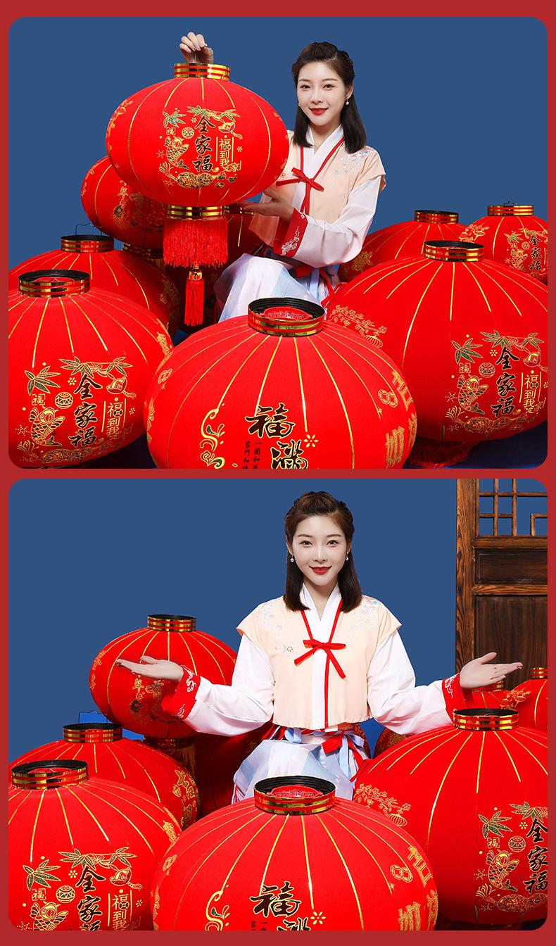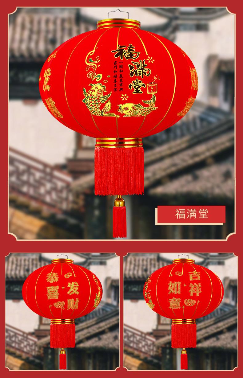 Venta al por mayor de fábrica Linterna Roja Flocada Linterna Publicitaria Festival de Primavera Año Nuevo Decoración Linterna Exterior Impermeable Linterna de Palacio