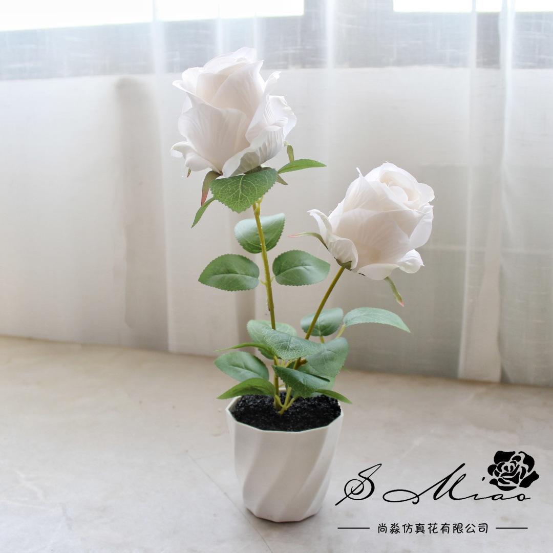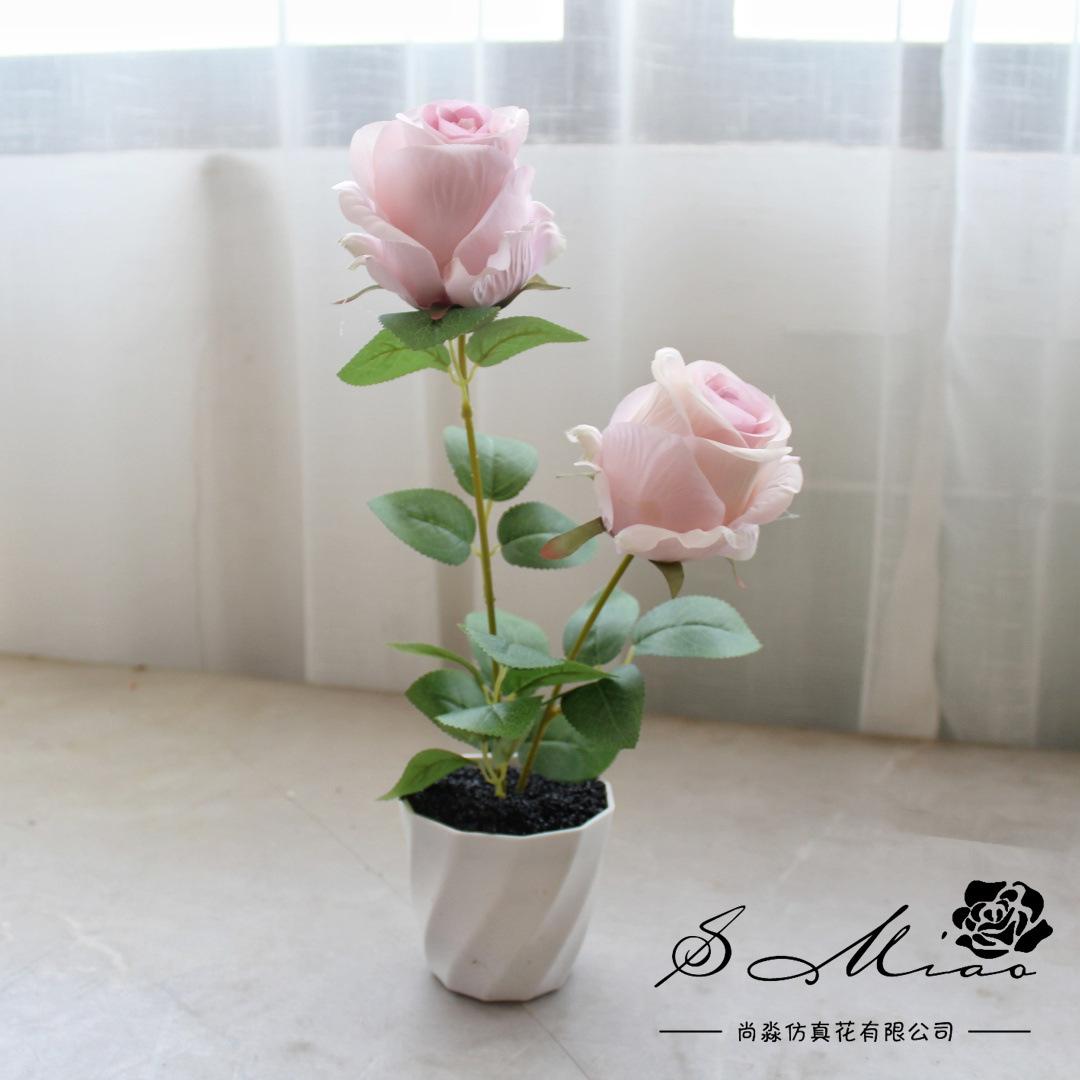 Flores Falsas, Rosas de Dos Cabezas, Bonsái Pequeño, Decoración para el Hogar Interior, Accesorios de Fotografía, Flores Artificiales, Plantas Artificiales en Maceta, Flores para Boda