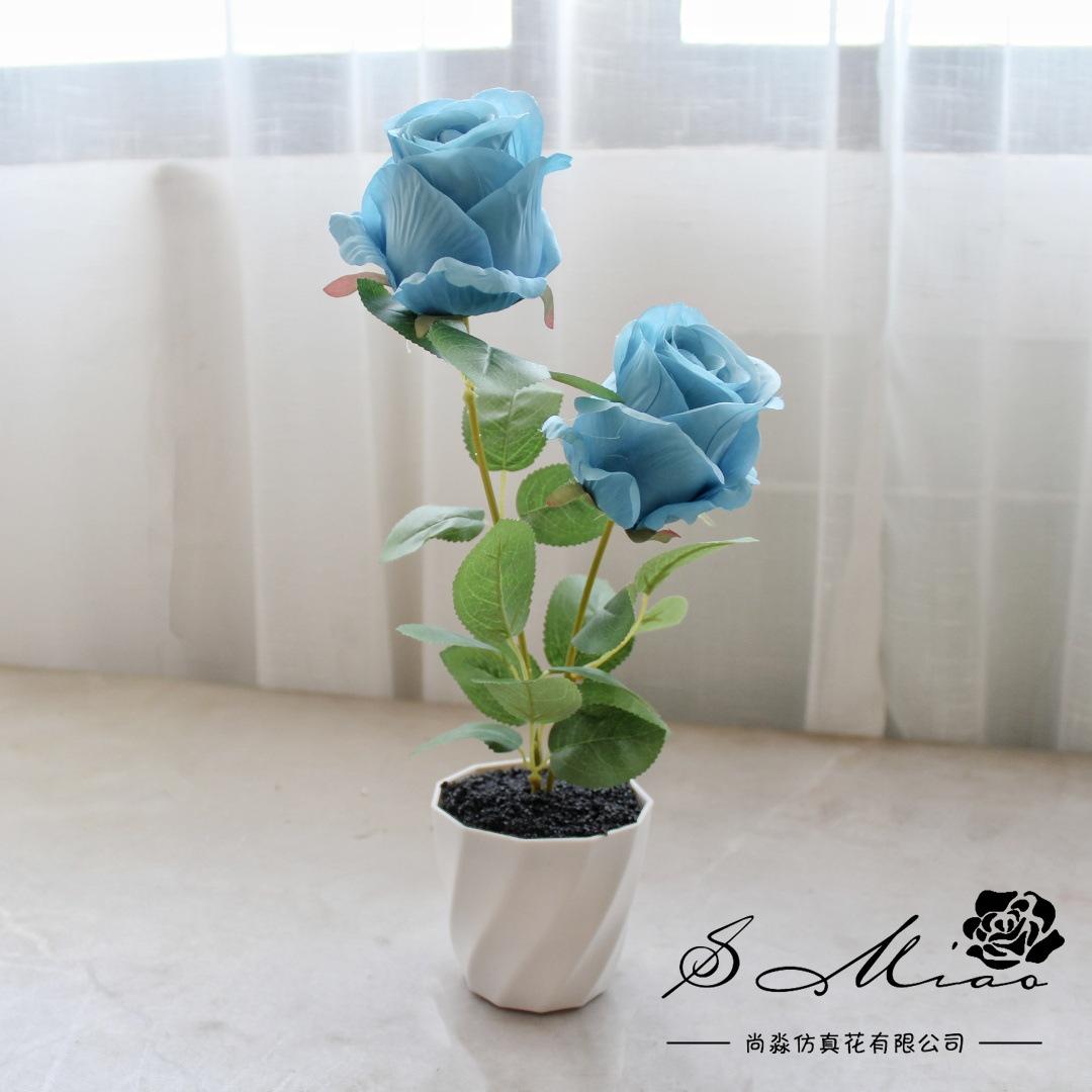 2473113 Blue rose potted plant with two ends (plastic pot)
