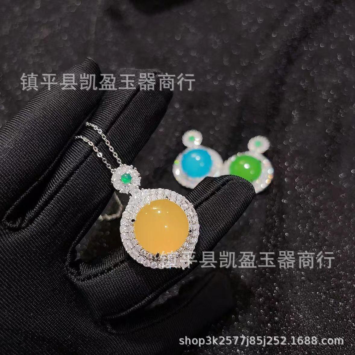 [Nombre del bebé] Exquisito colgante de huevo de paloma de calcedonia