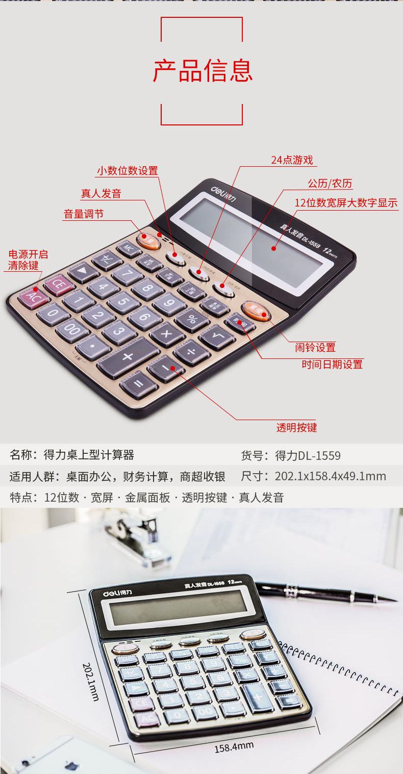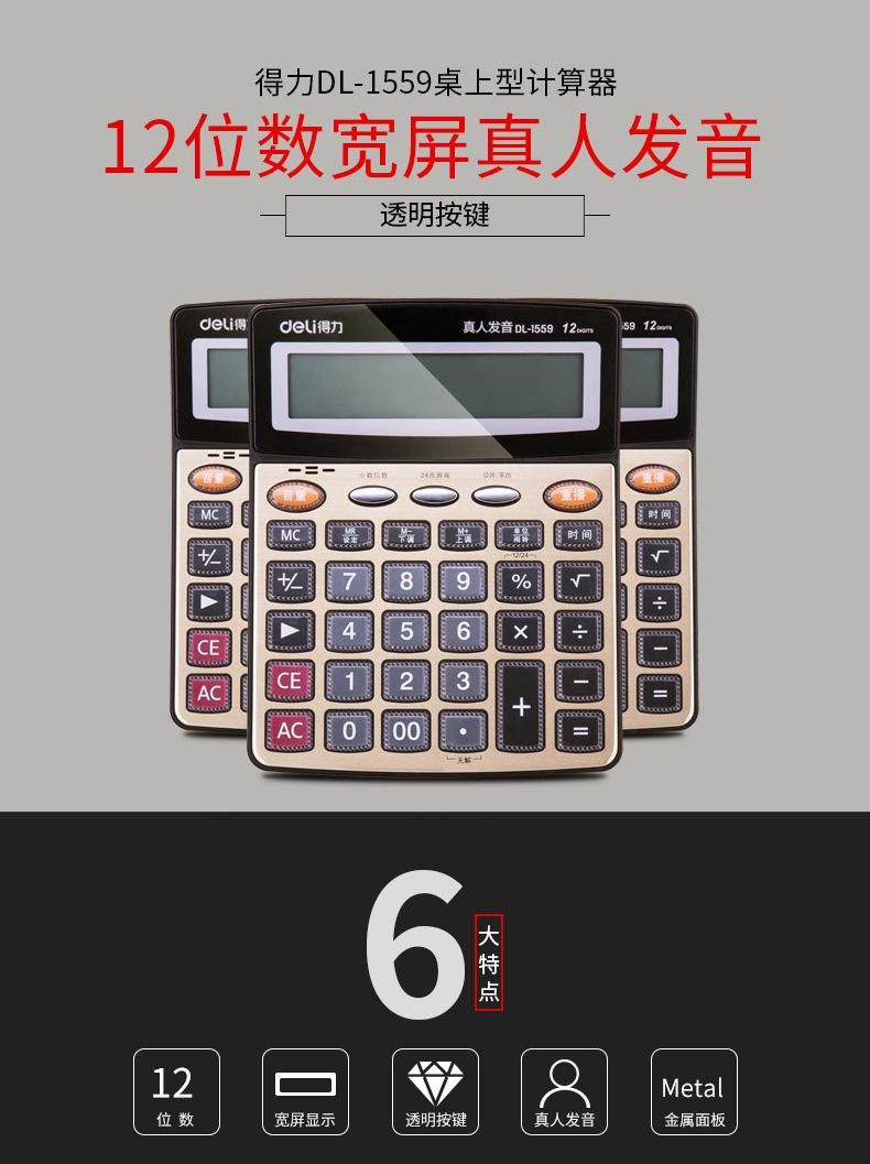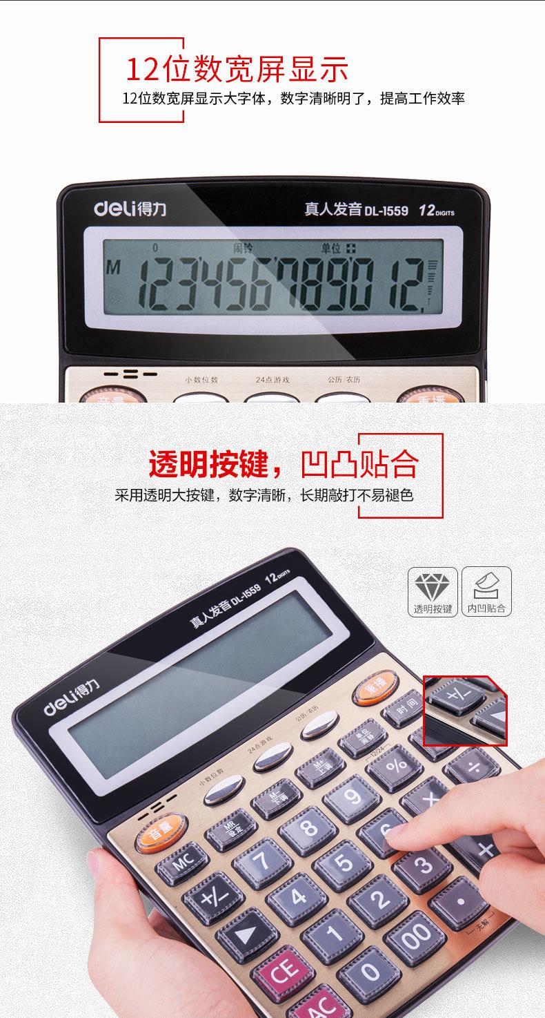 Calculadora de voz Deli 1559 para oficina, de 12 bits, con cristal grande y botones grandes, pantalla grande, venta al por mayor.