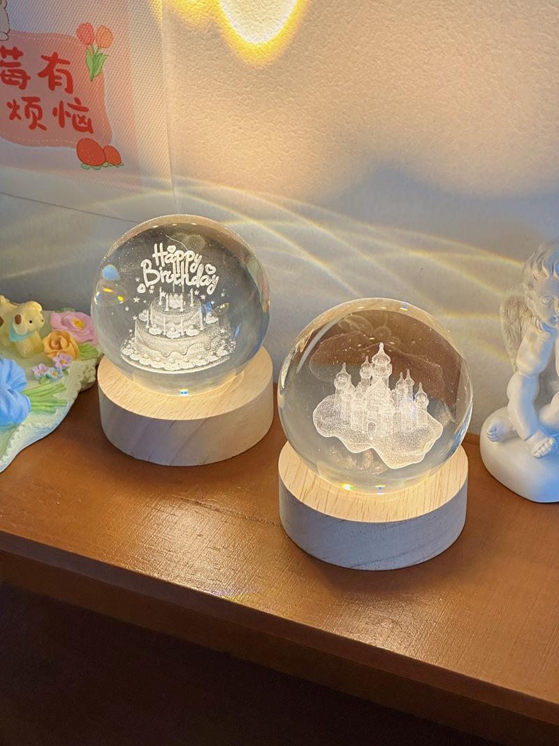 Romántica y Artística Luz Nocturna de Bola de Cristal Luminoso de Alta Gama Adorno Decorativo de Escritorio para Habitación Dormitorio Regalo de Cumpleaños Graduación